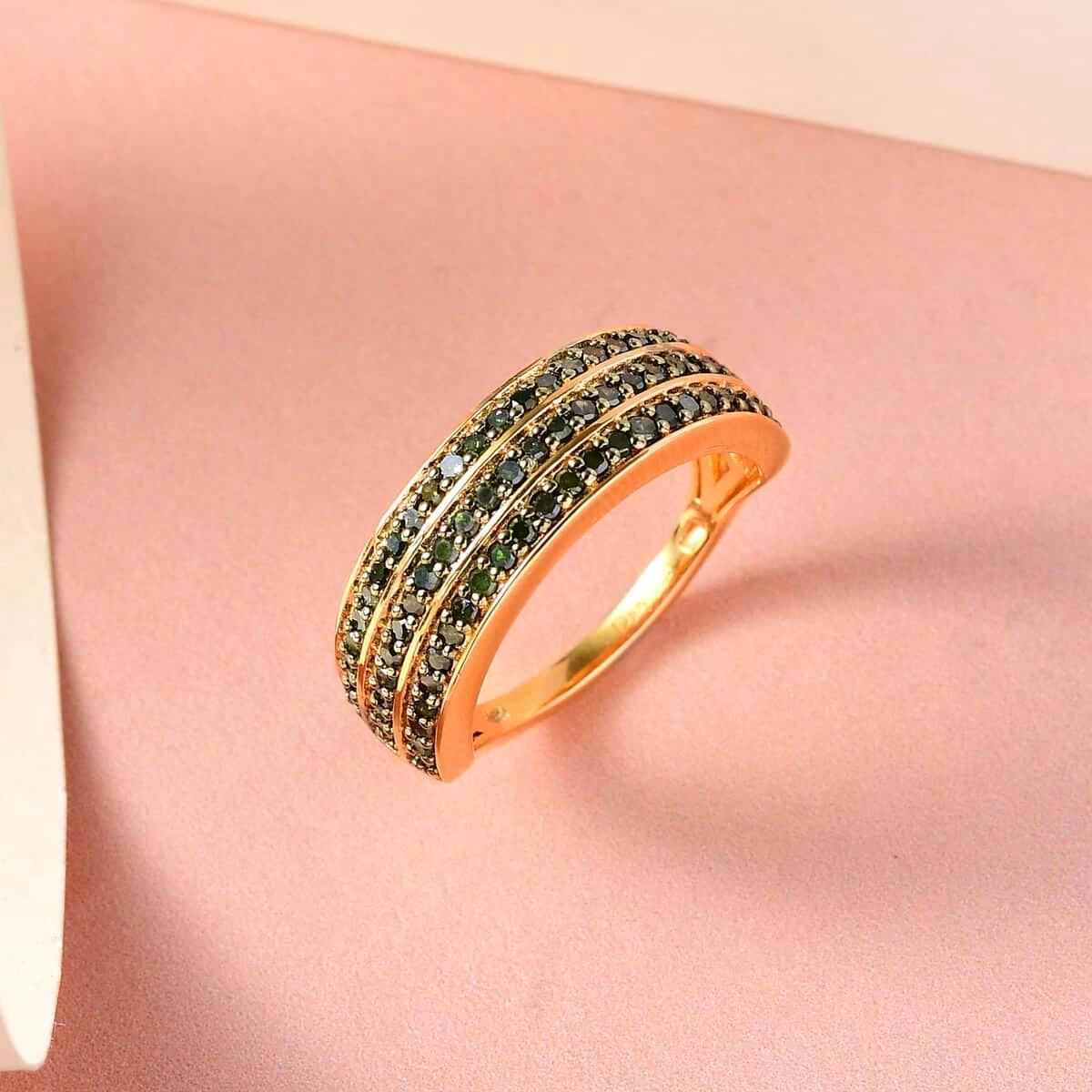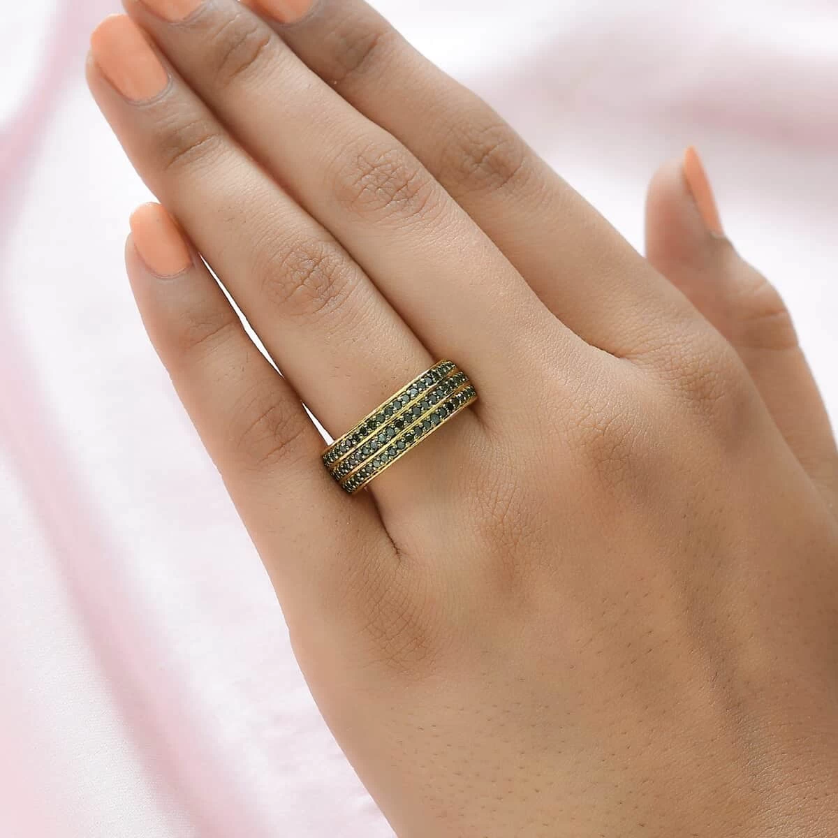 Inspired by the three essentials of life, this diamond ring signifies body, mind, and soul. This ring features metallic patterns with three rows of round blue-hued diamonds arranged precisely also giving a touch of cluster theme. The band ring signifies everlasting love, and this sterling silver ring represents the same. An heirloom gem loved for its luxurious look; diamonds are precious stones to gift. This April birthstone gem is highly resistant to scratching and abrasions and has a perfect hardness making this three-row ring suitable for daily wear. Colored diamonds are in trend due to their distinctive look. Along with the minimalistic look, this ring also reflects the beauty of fancy diamonds. This allows this ring to be the perfect choice for engagement and anniversary gifts.
