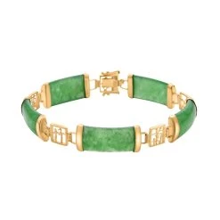 Elevate your style with our exquisite jade bracelet in sterling silver. This stunning station bracelet features traditional Chinese symbols that add a touch of culture and elegance to any outfit. The stylish design, box clasp, and fine finish make it the perfect accessory for any occasion.