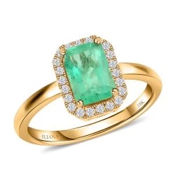 Behold the epitome of luxury and elegance – the Iliana AAA Colombian emerald and diamond ring in 18K yellow gold. This magnificent piece of jewelry is a true masterpiece, meticulously crafted with the finest materials and expertly designed to showcase the stunning natural beauty of Colombian emeralds.