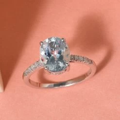 Premium Mangoro Aquamarine, Diamond (0.15 Cts) Ring In Platinum Over Sterling Silver 2.40 Ctw