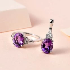 Premium Uruguayan Amethyst, White Zircon Ring And Pendant In Platinum Over Sterling Silver 3.75 Ctw