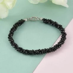Thai Black Spinel Beaded Bracelet In Platinum Over Sterling Silver (7.25 In) 39.35 Ctw