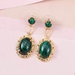 TLV KARIS African Malachite Earrings In 14K YG Over Sterling Silver And 18K YG Plated 23.15 Ctw