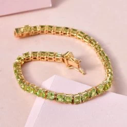 Asscher Cut Arizona Peridot Tennis Bracelet In Platinum Over Sterling Silver (7.25 In) 13.85 Ctw