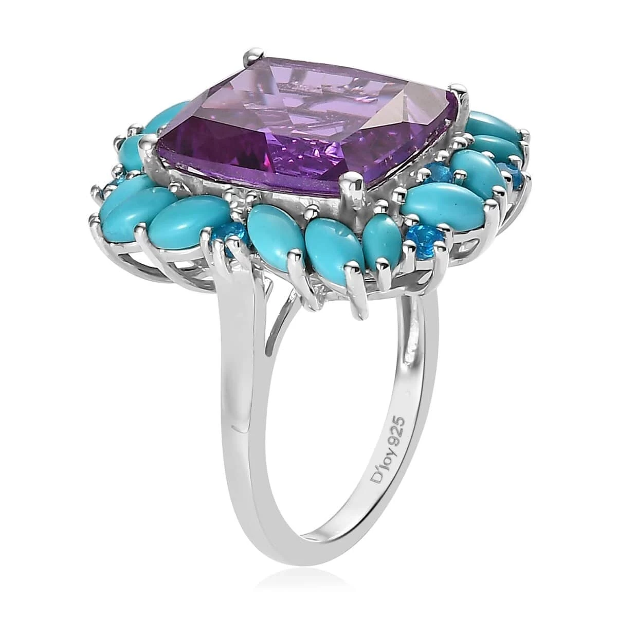 - HALO OF COLORS: The halo of multi-gemstones around the center stone gives a vibrant look