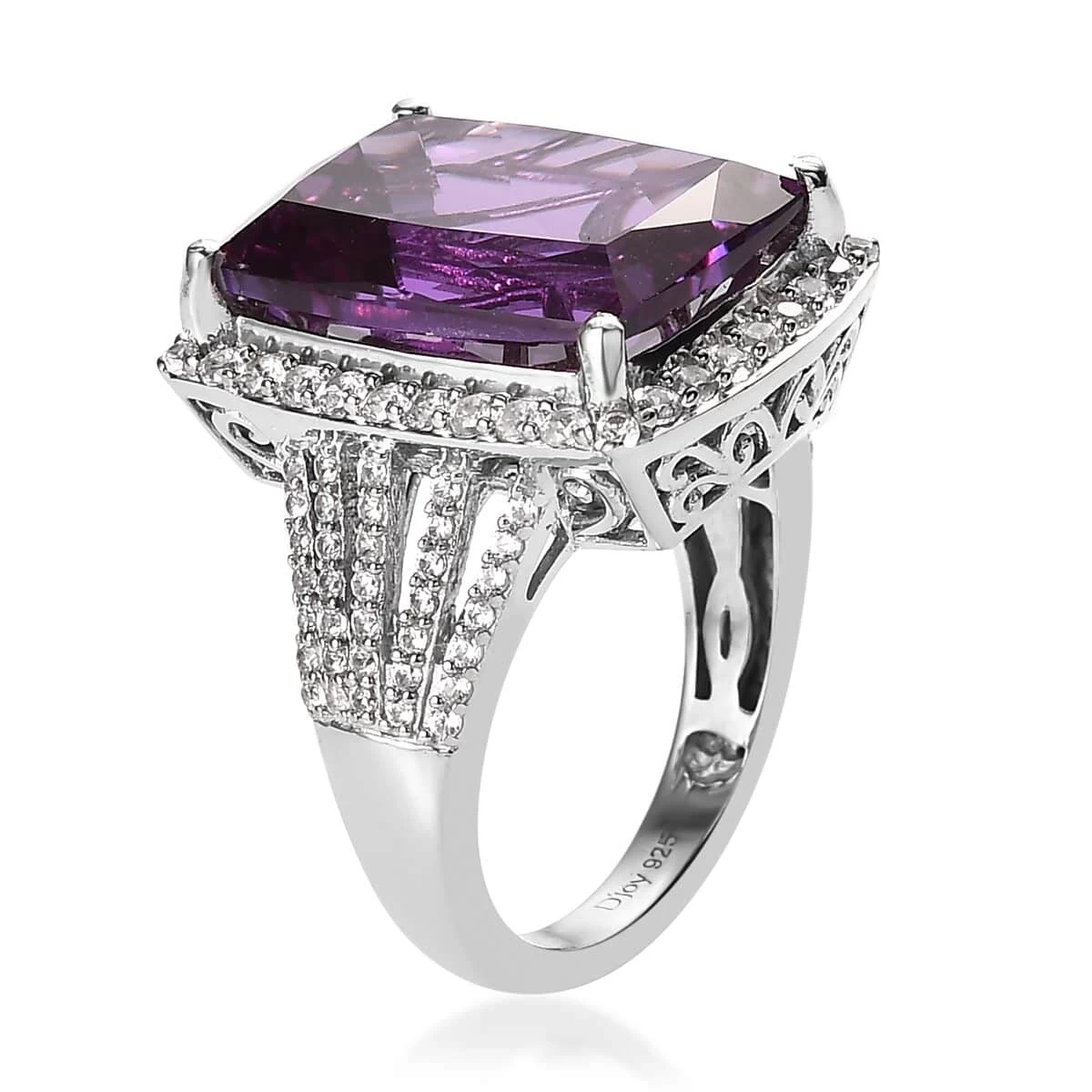 This lab-grown color change sapphire ring is sure to make a statement. The center of the ring displays a stunning color-changing sapphire surrounded by a halo of white zircons. In addition, the halo ring’s shanks are adorned with white zircons, adding sparkle and visual interest. The sterling silver construction ensures that this halo engagement ring is durable and elegant, making it a great addition to any jewelry collection.