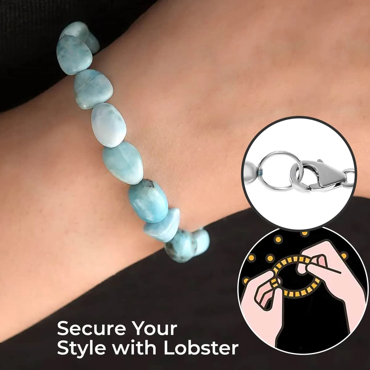 - TIMELESS CRAFTSMANSHIP: The larimar beads are elegantly strung on a sterling silver frame, adding an air of timeless luxury to the beaded jewelry for women. Known for its strength and lustrous finish, sterling silver provides a sturdy and beautiful frame