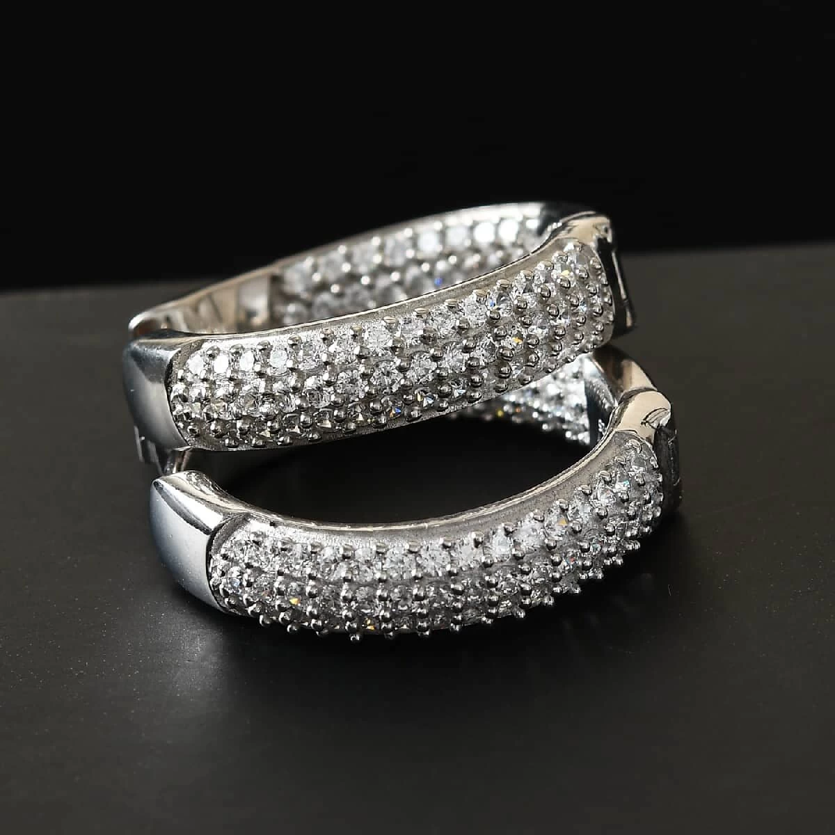 Inspired by the eternity of life, these CZ earrings symbolize wholeness. The design involves three rows of the finest gems arranged beautifully inside and outside the hoops. Crafted in sterling silver, these earrings from Lustro Stella are perfect for daily wear owing to the perfect hardness of the zirconia. Hoop earrings are always in trend representing boldness and this pair of adornments represents the same. The latch closure on the ends allows easy gripping of earrings to the earlobes. These hoop earrings are versatile and can be paired with any outfit. This piece of adornment from Lustro Stella displays the premium high-quality CZ that is colorless, flawless, and sparkle more than diamonds at a fraction of the cost.
