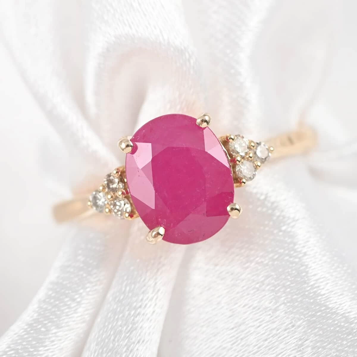 - GEMSTONE DETAILS: This ring features an oval-shaped ruby in the center. Each of the diamonds is held perfectly in a precise setting