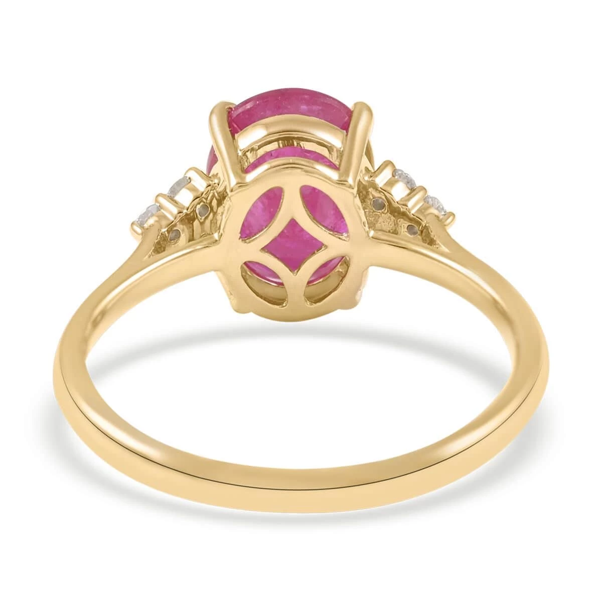 - METAL DETAILS: This ruby and diamond ring is crafted in 10K yellow gold. This is a popular choice for high-end jewelry due to its durability and resistance to tarnishing, making it an ideal choice for a ring that will be worn and treasured for years to come