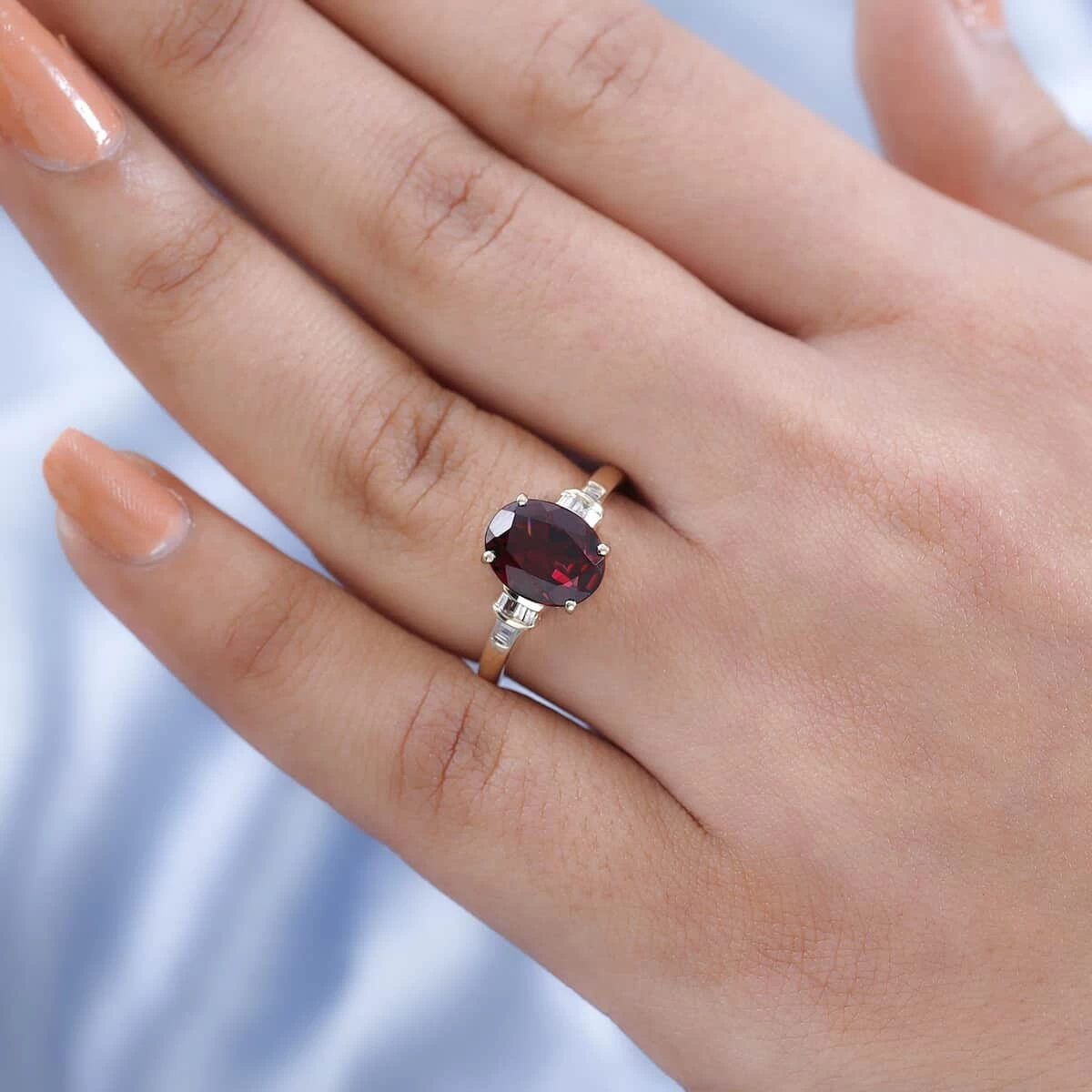 - COMFORT FIT:This wine garnet and diamond gold wedding ring have a smooth under gallery that slides the finger easily. The hypoallergenic metal is safe for all skin types
