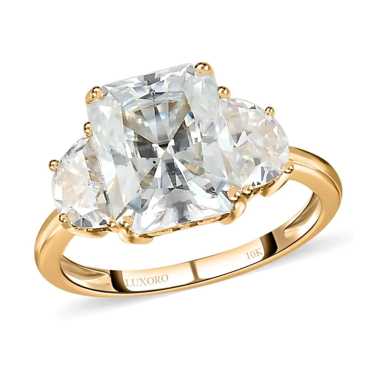 - AUTHENTIC 10K GOLD:Housing the three exquisite Moissanite stones is an authentic 10K gold setting, heightening the overall allure of this ring. Its warm sheen adds a charming touch, beautifully complementing the glittering Moissanite stones and heightening their radiance
