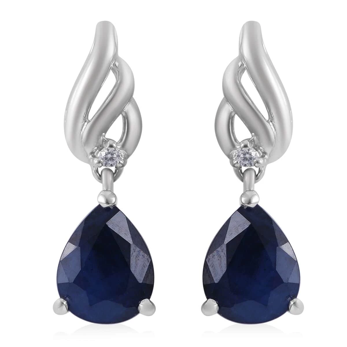 Infuse your look with the bold elegance of Madagascar blue sapphire earrings. Fashioned in a flame-inspired design, these sterling silver drop earrings, accented with twinkling white zircon and graced with platinum plating, will set your style ablaze.