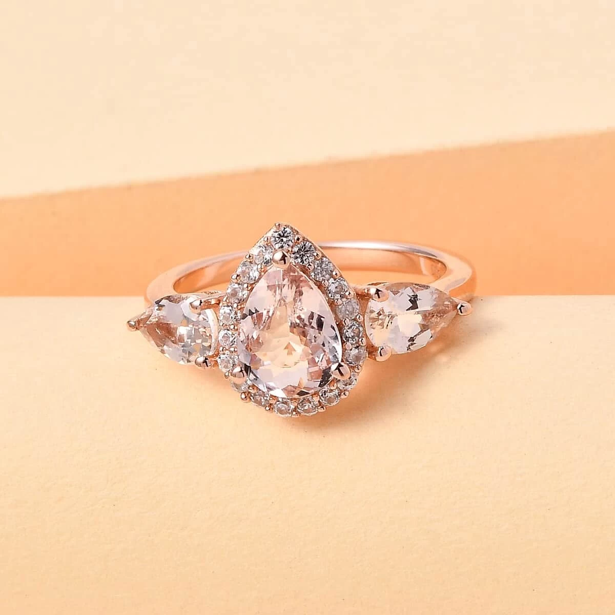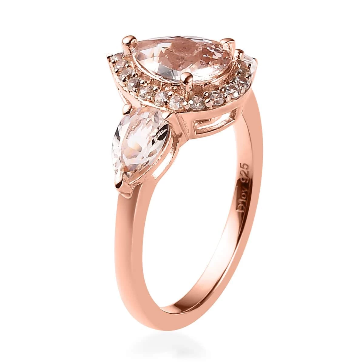 - PINK AND WHITE COMBO: This silver halo ring features three morganite stones in the center. The halo of white zircons around the center stone gives a stunning look
