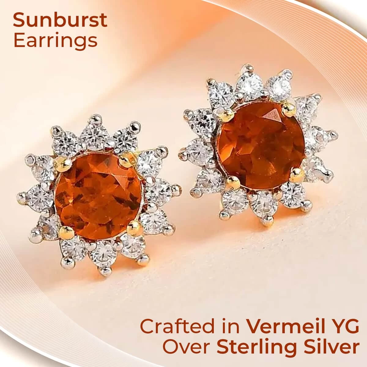 - VERMEIL YG OVER STERLING SILVER: Crafted with precision, these zircon accent sunburst halo earrings feature a layer of lustrous vermeil yellow gold over sterling silver. This union of metals combines the sophistication of gold with the durability of silver, ensuring your earrings remain an eternal symbol of your refined taste
