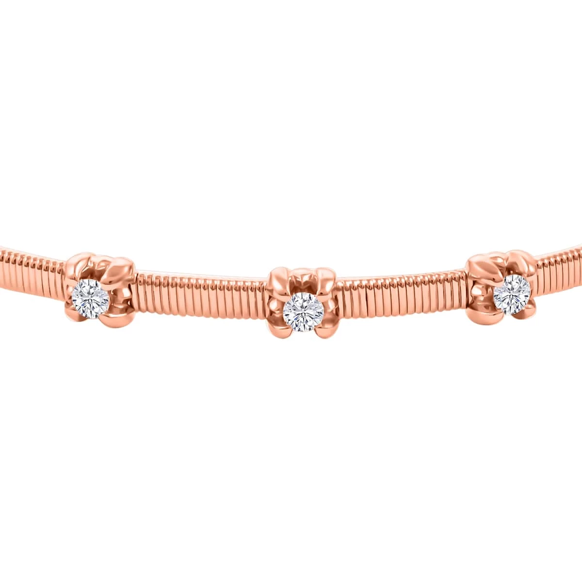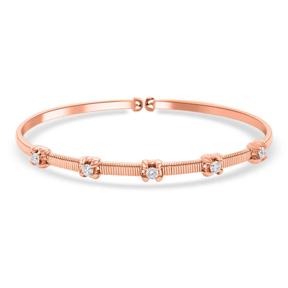 Elegance meets innovation in this diamond wristlet, crafted in gold and embraced with the functionality of a titanium spring. This marvel of craftsmanship radiates opulence and offers unparalleled comfort and versatility. Each shimmering diamond is meticulously set, creating a dance of light that mirrors the graceful movement of the wrist. And with the innovative flex bangle feature, this 14K gold wristlet effortlessly adapts to the contours of your wrist, promising a sublime fit without forsaking style.