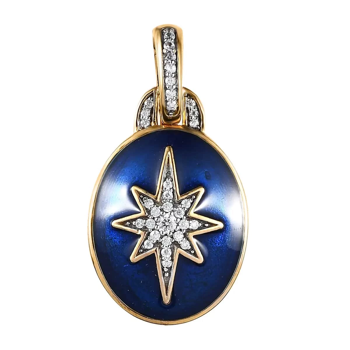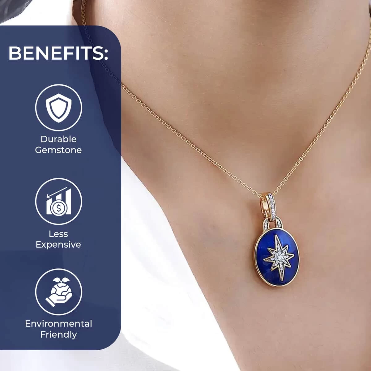 - BLUE ELEGANCE MEETS YELLOW GOLD LUXURY: The enchanting blue enameled base of the oval pendant is a harmonious contrast to the vermeil yellow gold plating, creating a striking combination that resonates with sophistication and opulence