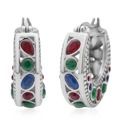 - GEMSTONE DETAILS: The vivid shaped gemstones arranged in the forefront of these earrings create an eye-catching appeal. The gradually arranged round shaped crystals in the semi-circular pattern make these hoops different from others. The gemstones are set in bezels for utmost security