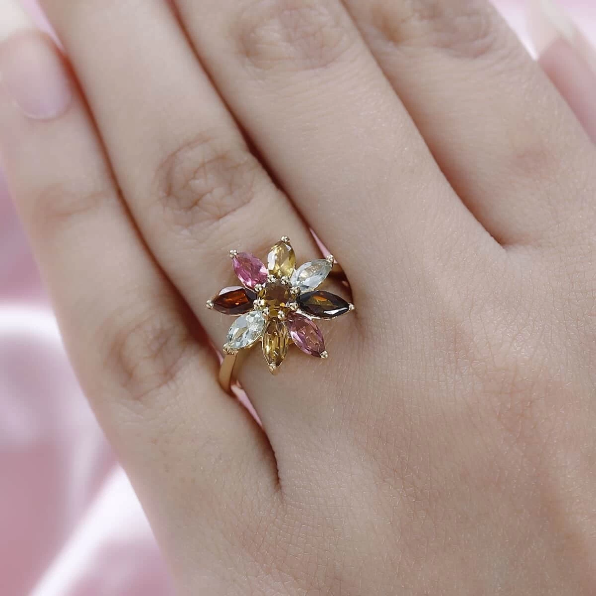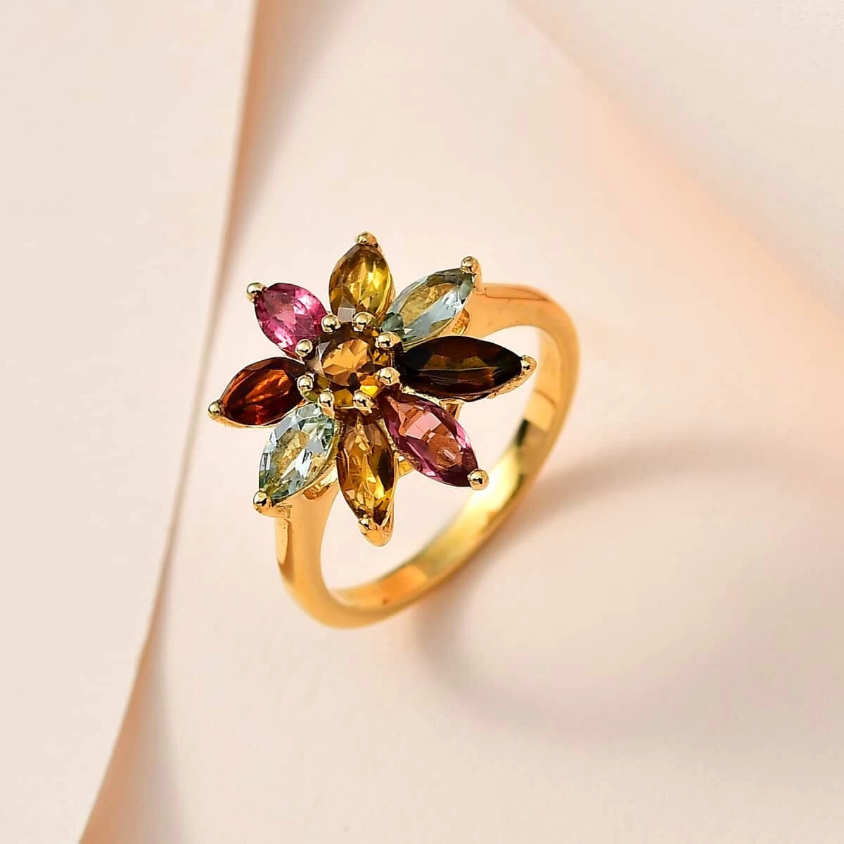 - MARQUISE MASTERPIECE: Each marquise gemstone, prong-set to perfection, lends a unique beaded look to this colorful flower ring