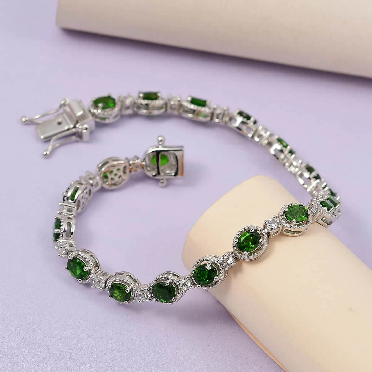 Indulge in the breathtaking beauty of the Chrome Diopside and White Zircon Bracelet, a true masterpiece that exudes elegance and sophistication. Crafted with the finest materials and expertly designed, this exquisite bracelet is the perfect embodiment of opulence and luxury.