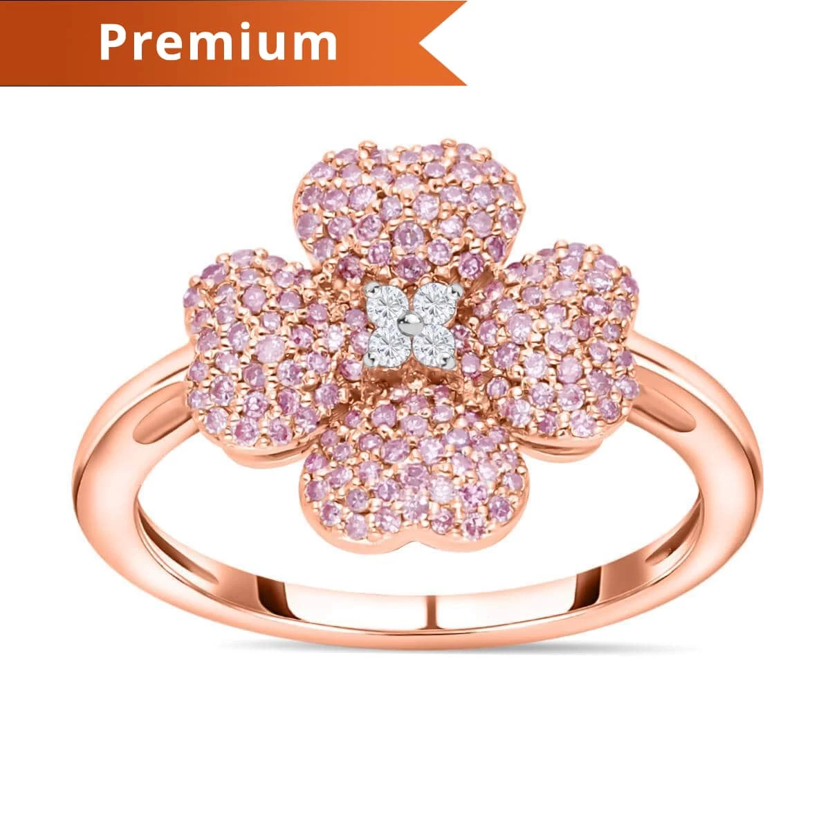 Experience elegance and beauty with this natural pink diamond ring. The intricate clover leaf design symbolizes good luck and fortune, while the pink diamonds on the leaves add color and glamour. In addition, the white diamonds in the center enhance the overall beauty of the piece.