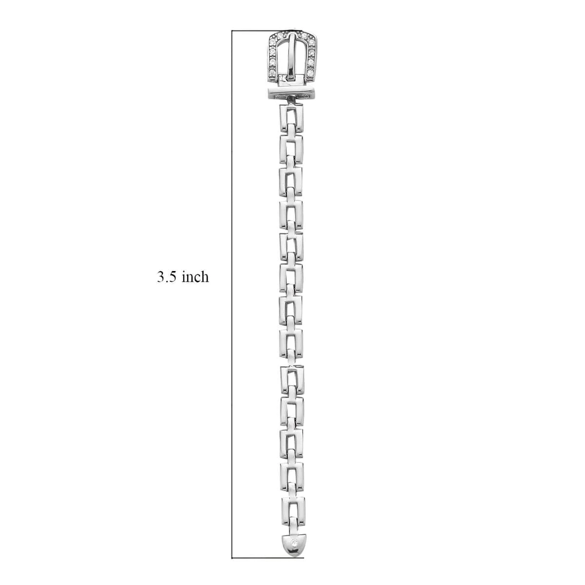 The popularity of belt buckle rings during the 18th century inspires this natural white zircon adjustable ring. This adjustable ring features elongated links connected, making a long chain. One end of the ring features a buckle design studded with sparkling zircons. The adjustable belt band moves through the buckle, making this belt buckle ring fit your finger size. Genuine plating is applied in a thin layer to this piece of jewelry to prevent it from getting tarnished. This trendy ring is crafted in sterling silver. This natural white zircon belt buckle ring is perfect for everyday wear and suits casual and professional outfits.