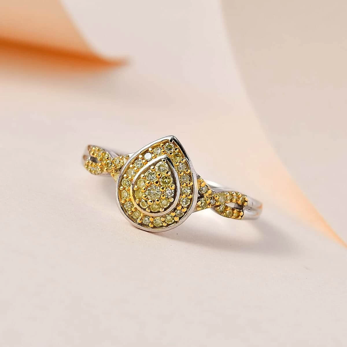 Ignite a passion with the splendor of the natural yellow diamond ring. With its radiant cluster design, each round diamond catches the light in a dance of elegance and allure. Reflecting the beauty of infinite love, this ring, set in lustrous platinum over sterling silver, encapsulates the promise of forever. Own a piece that is as enduring and brilliant as your love story.