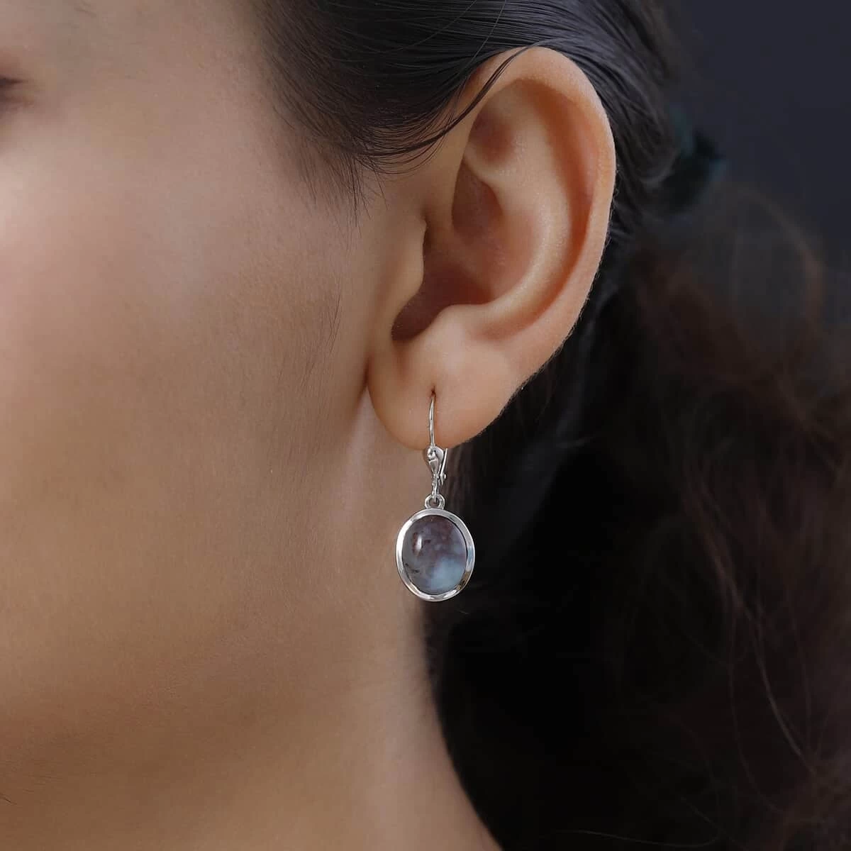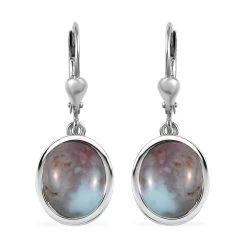 This eclectic pair of earrings are just the perfect choice for the ones looking to make a fashion statement. Inspired by the display’s colors, patterns, and variations in transparency, this natural oval shaped Zimbaprase flaunts pale blue hues and symbolizes faith, hope, and joy. Artfully swinging in a sterling silver frame encased with platinum secured with lever backs, this Zimbaprase is the newest gem discovery on earth and the first new gemstone discovery of the 21st Century, giving you just the look you deserve!