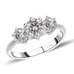 Step into a world where sparkle meets story with the moissanite ring for women. Capturing the essence of past, present, and future, the trilogy design boasts three radiant stones, set against a backdrop of beaded metal and lustrous platinum. More than just jewelry, it’s a love tale crafted for your finger.