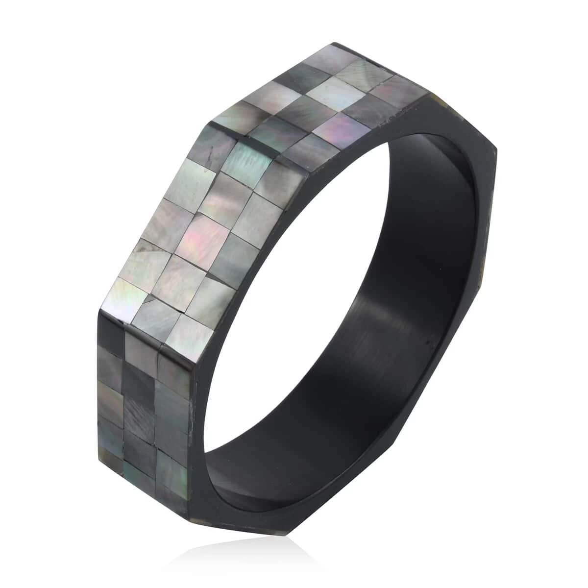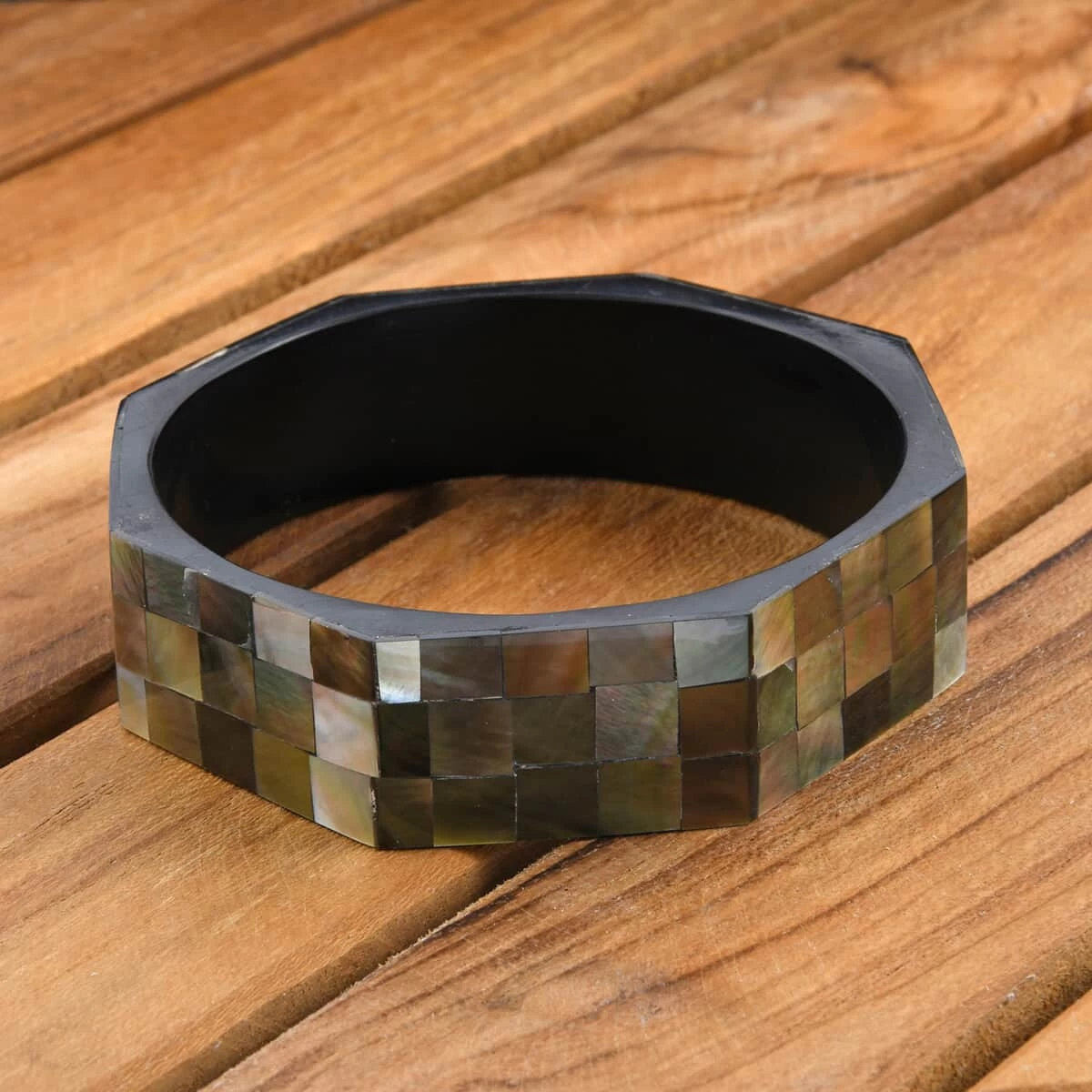 The octagon mother-of-pearl inlay bangle bracelet with white inner resin is a stunning and unique piece of jewelry perfect for adding elegance to any outfit. This bracelet is crafted with a beautiful mother-of-pearl inlay design that is shaped into an octagon and set against a white inner resin. It’s about time to add a bit of a great twist to your jewels for everyday accessories and a touch of glamor for more formal occasions.