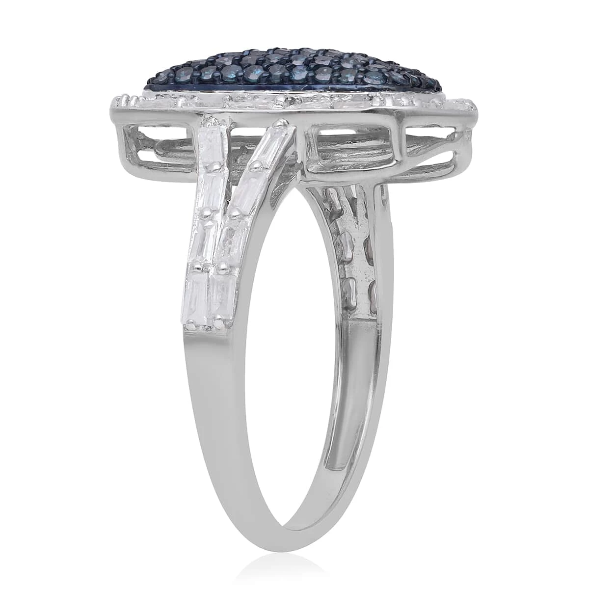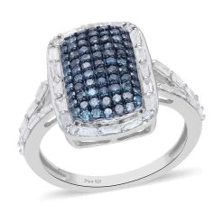 This diamond ring is a stunning piece of jewelry with a unique and elegant design. This ring is made from sterling silver and features a cluster of colored diamonds in the center. This sterling silver ring features baguette white diamonds that add a touch of luxury and sparkle to any outfit. The ring’s feminine and graceful appearance makes it a standout accessory for any occasion. This cluster ring’s intricate design showcases a beautiful contrast between the colored and bright white diamonds. The white diamonds bring out its shine and brilliance. Combining these two colors creates a beautiful harmony that enhances the ring’s natural beauty.
