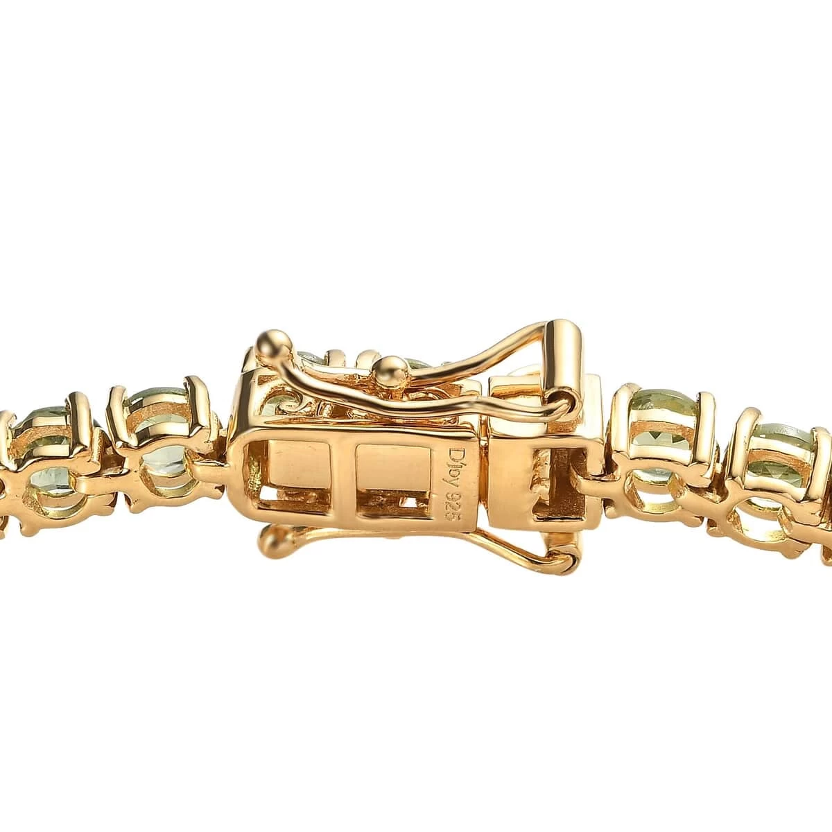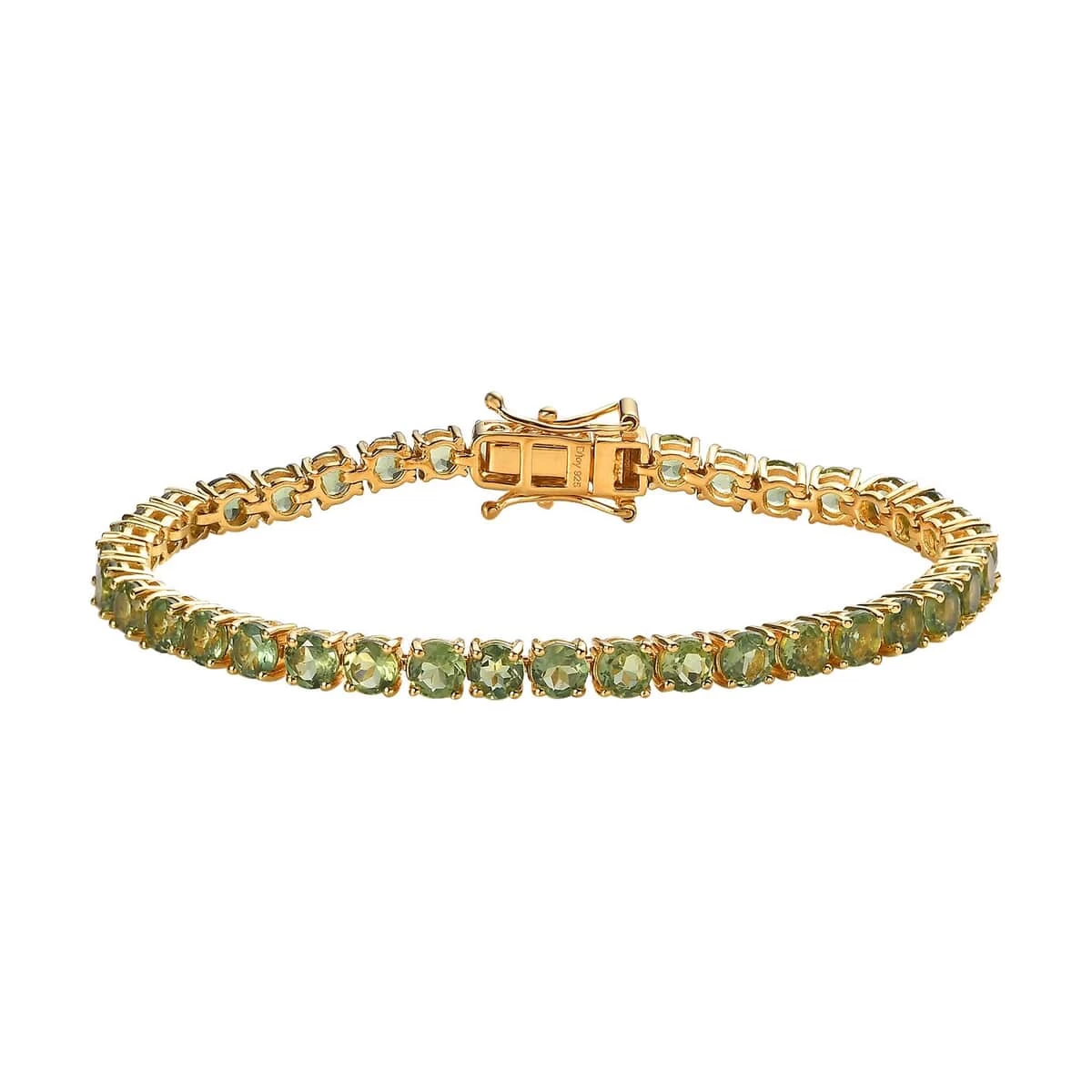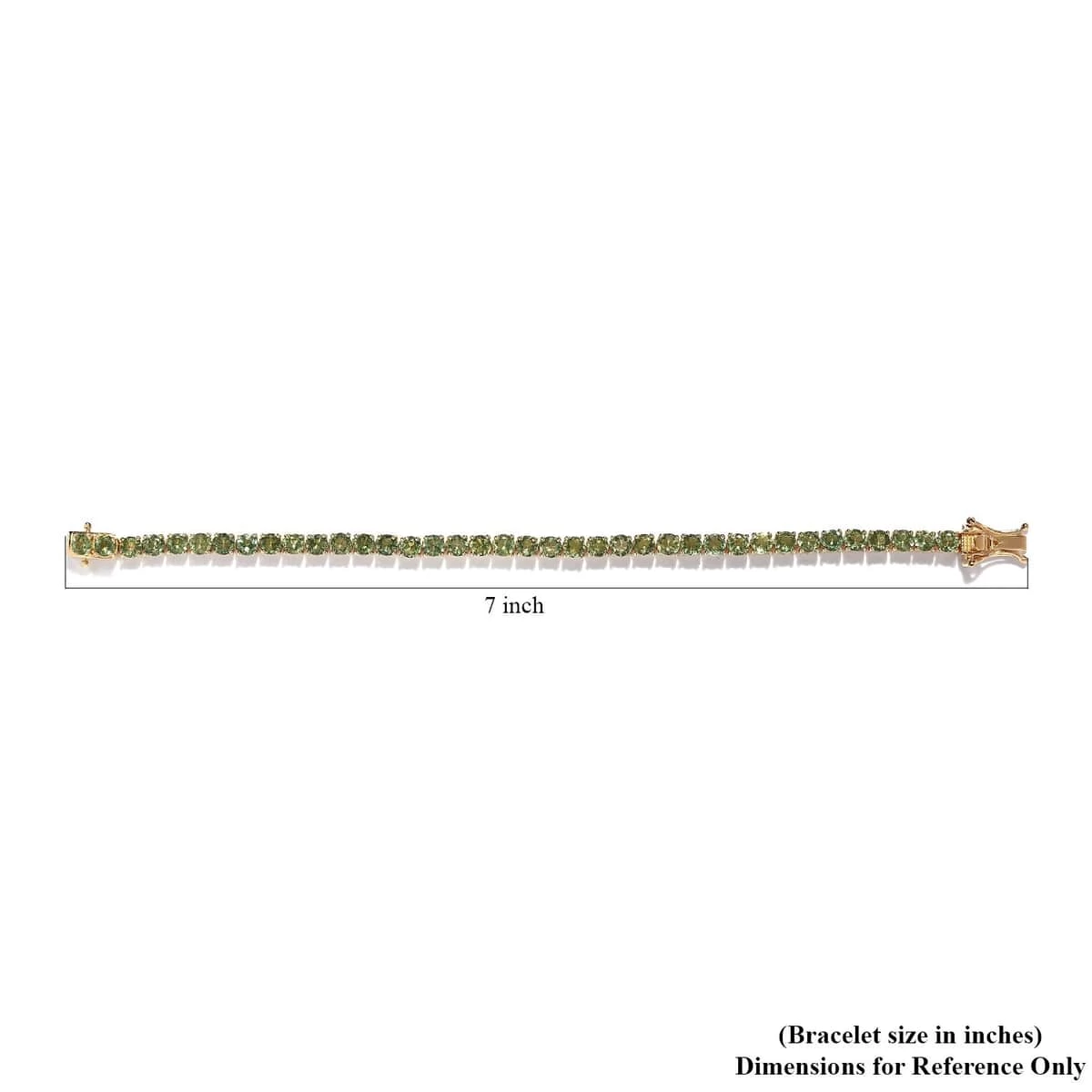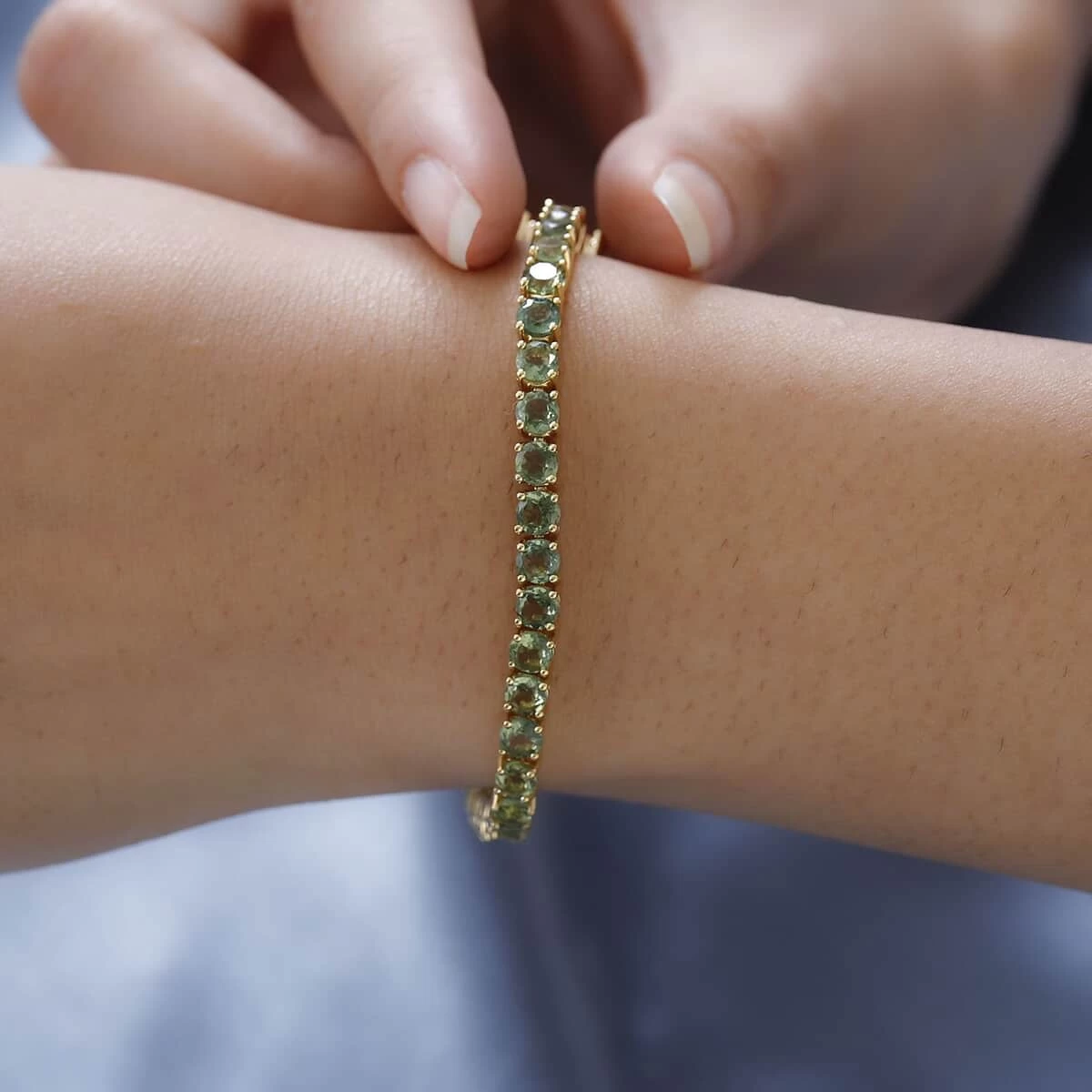 - LINE OF SPLENDOR: The line bracelet style, adorned with a series of green apatite gemstones, provides a continuous and irresistible shimmer