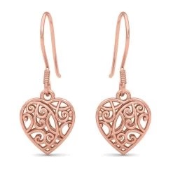 FINE CRAFTSMANSHIP:The heart motif is accentuated with detailed swirls and openwork, giving an intricate design to these women’s heart earrings