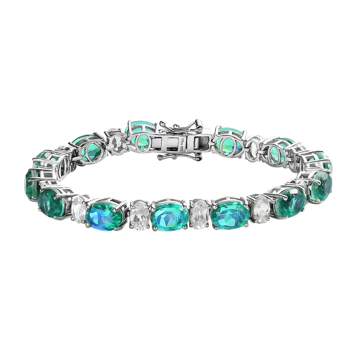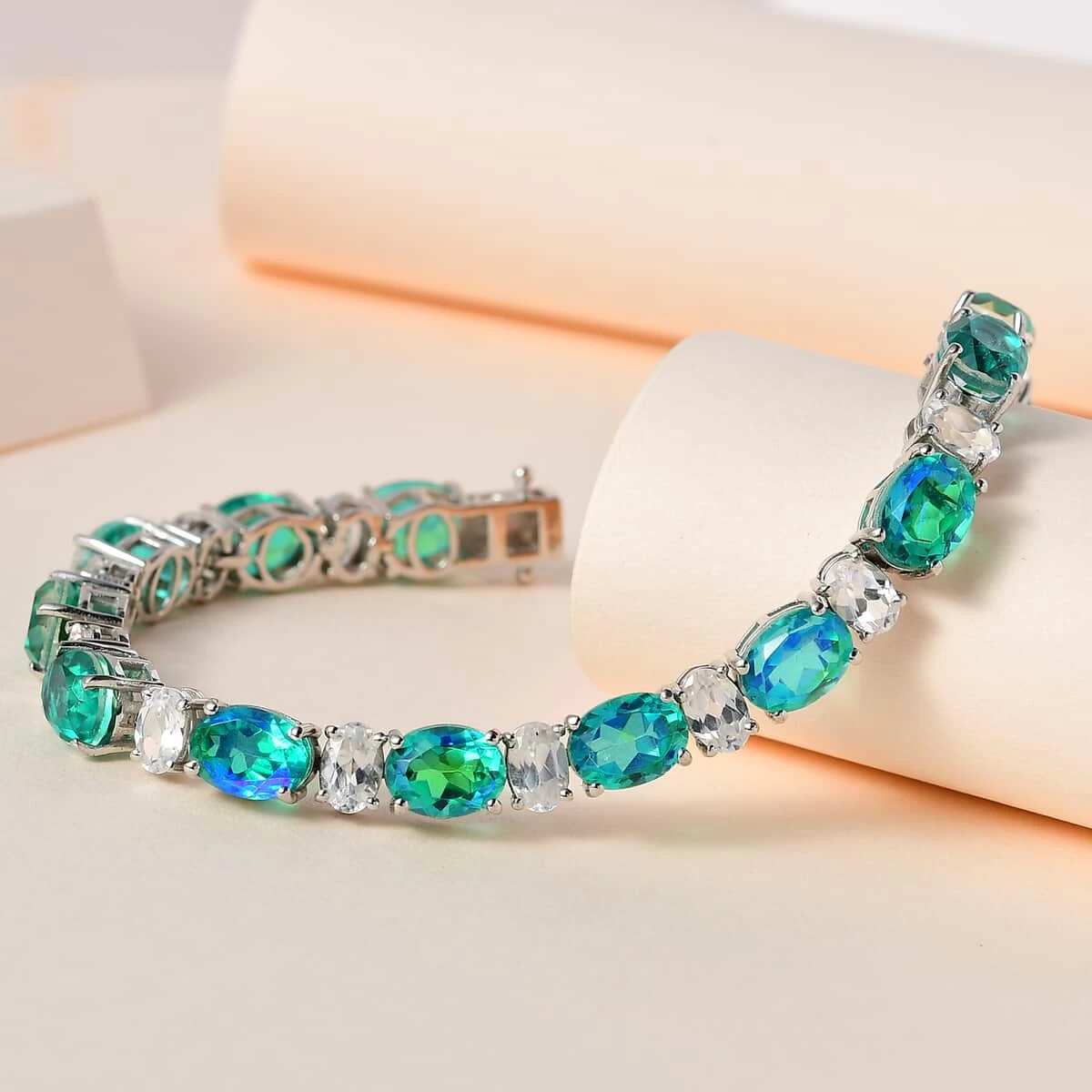 - WHITE ZIRCON GEMSTONES: Embracing the peacock quartz triplets are dazzling white zircon gemstones that ignite the tennis silver bracelet with exceptional radiance. Their scintillating fire and immaculate sparkle create a captivating display of brilliance