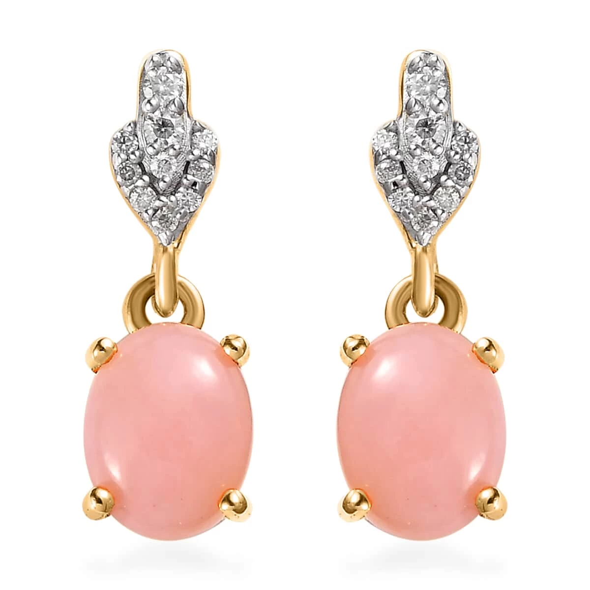 Indulge in the enchanting allure of these Peruvian pink opal dangle earrings in vermeil yellow gold over sterling silver, a true testament to elegance and sophistication. Radiating with a delicate pink hue, the Peruvian pink opal captures the essence of grace while Moissanite’s shimmering brilliance adds an ethereal touch, creating a mesmerizing dance of light with every movement.