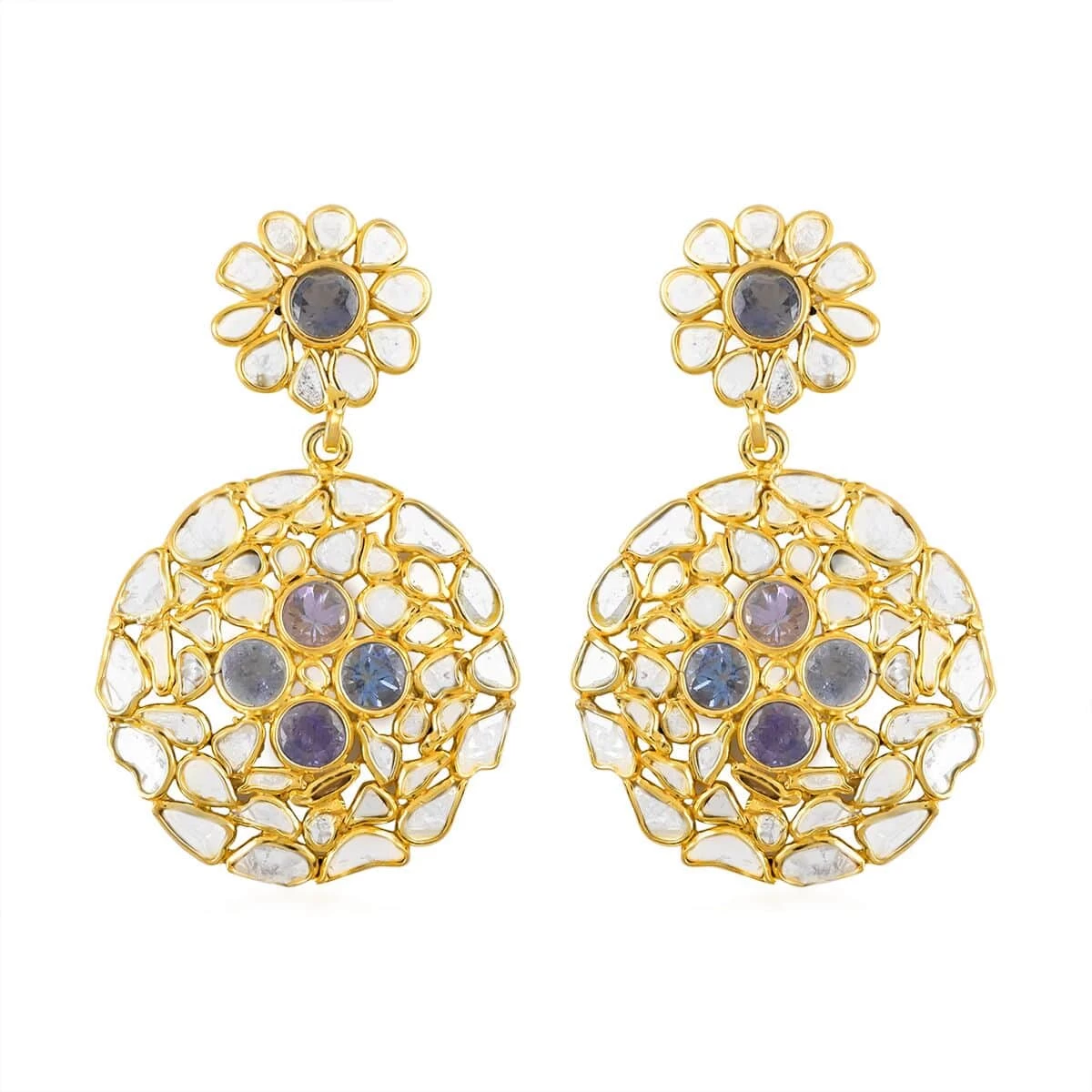 - GLORIOUS 14K GOLD OVERLAY: Adding a layer of sophistication, the earrings feature a 14K yellow gold overlay on a sterling silver base. This rich gold sheen enhances the colors of the gemstones and diamonds, providing a beautiful contrast and adding depth to the design