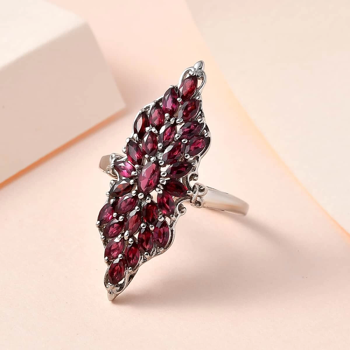 - CLUSTER OF LUXURY: Crafted as a cluster ring, this sterling silver piece showcases a multitude of marquise-shaped anthill garnets, offering a bouquet of fiery brilliance.
