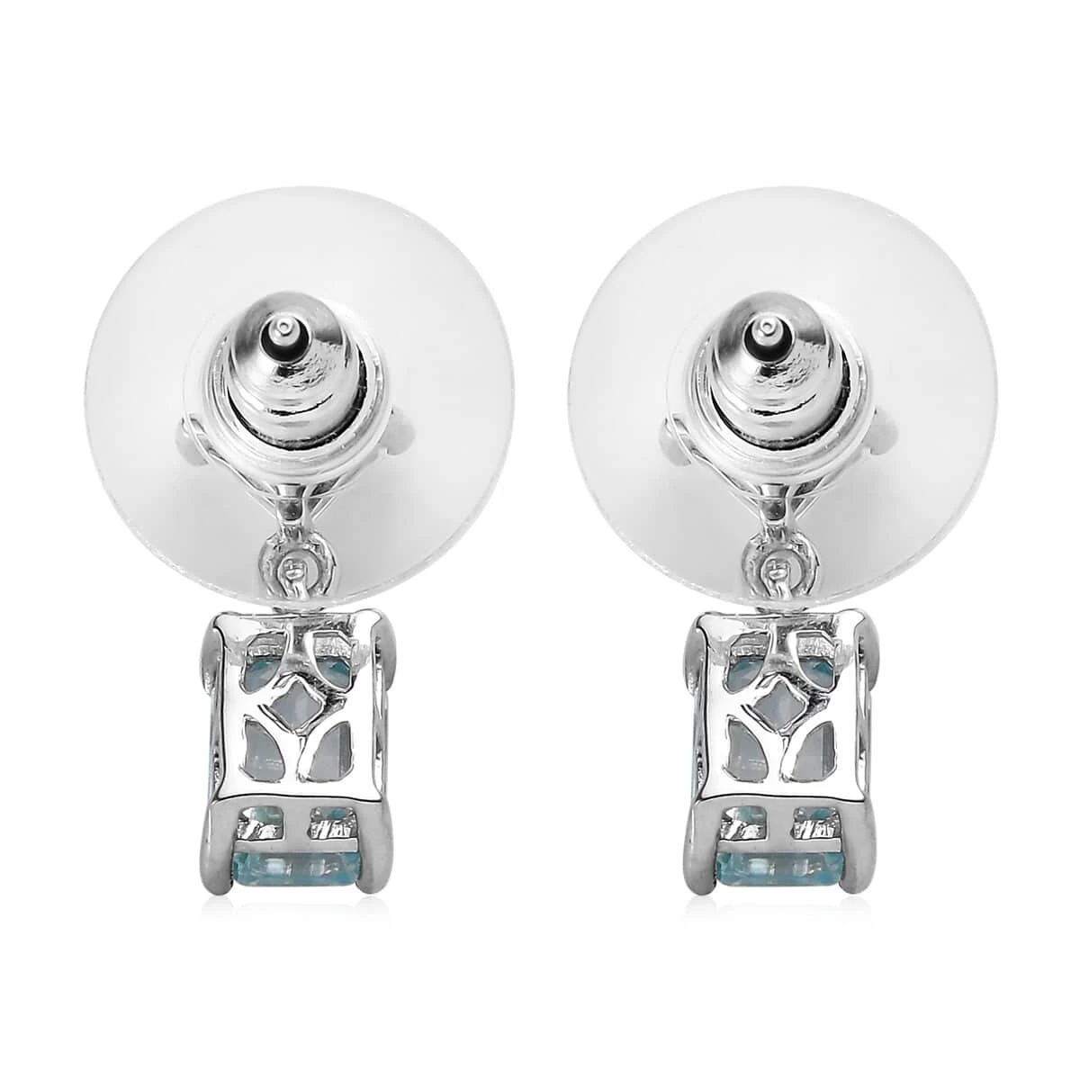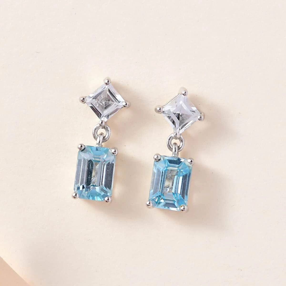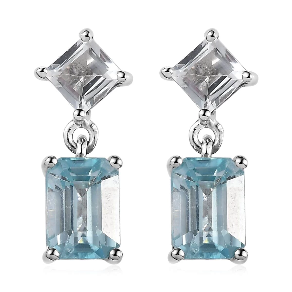Elegantly crafted, these premium Cambodian blue zircon and white topaz dangling earrings are sheer delight to the eye. Square cut topaz is embellished above the octagon shaped blue zircon. The gems offer fine cut, eye clean clarity, flamboyant structure, and balanced composition. Blue Cambodian zircon is cherished gem for its lively blue color. This gem holds more higher refractive index with unmatched fire and brilliance when compared to other blue gems. Zircons are renowned as the unique distinction of being the oldest mineral. Topaz adds to the durability of the earrings, magnifying the brilliance. These earrings are gracefully crafted in sterling silver with rich finish. The metal frame is hypoallergenic making it an ideal wear for all skin types in daily rotation. These dangle earrings are classic enough to be adorned with its feminine poise and luxurious charm.