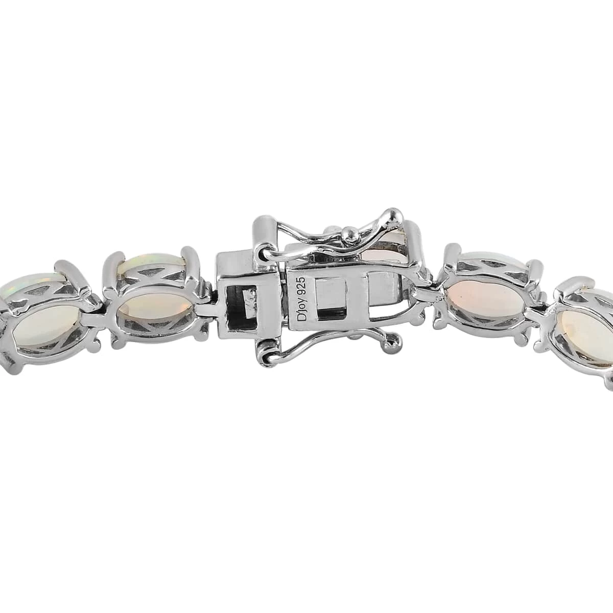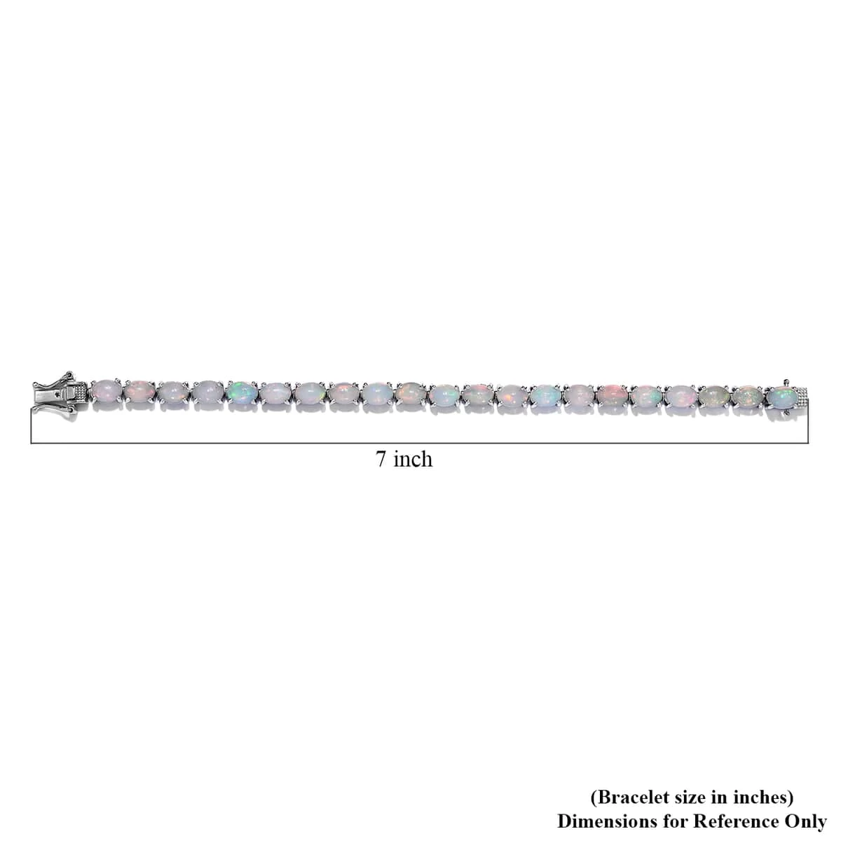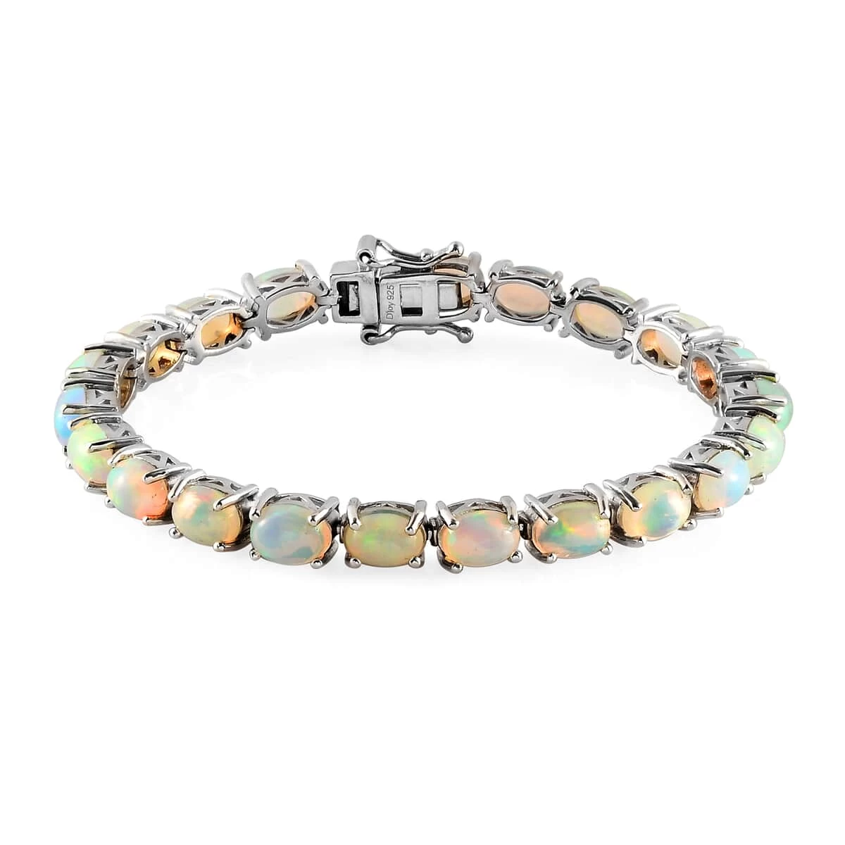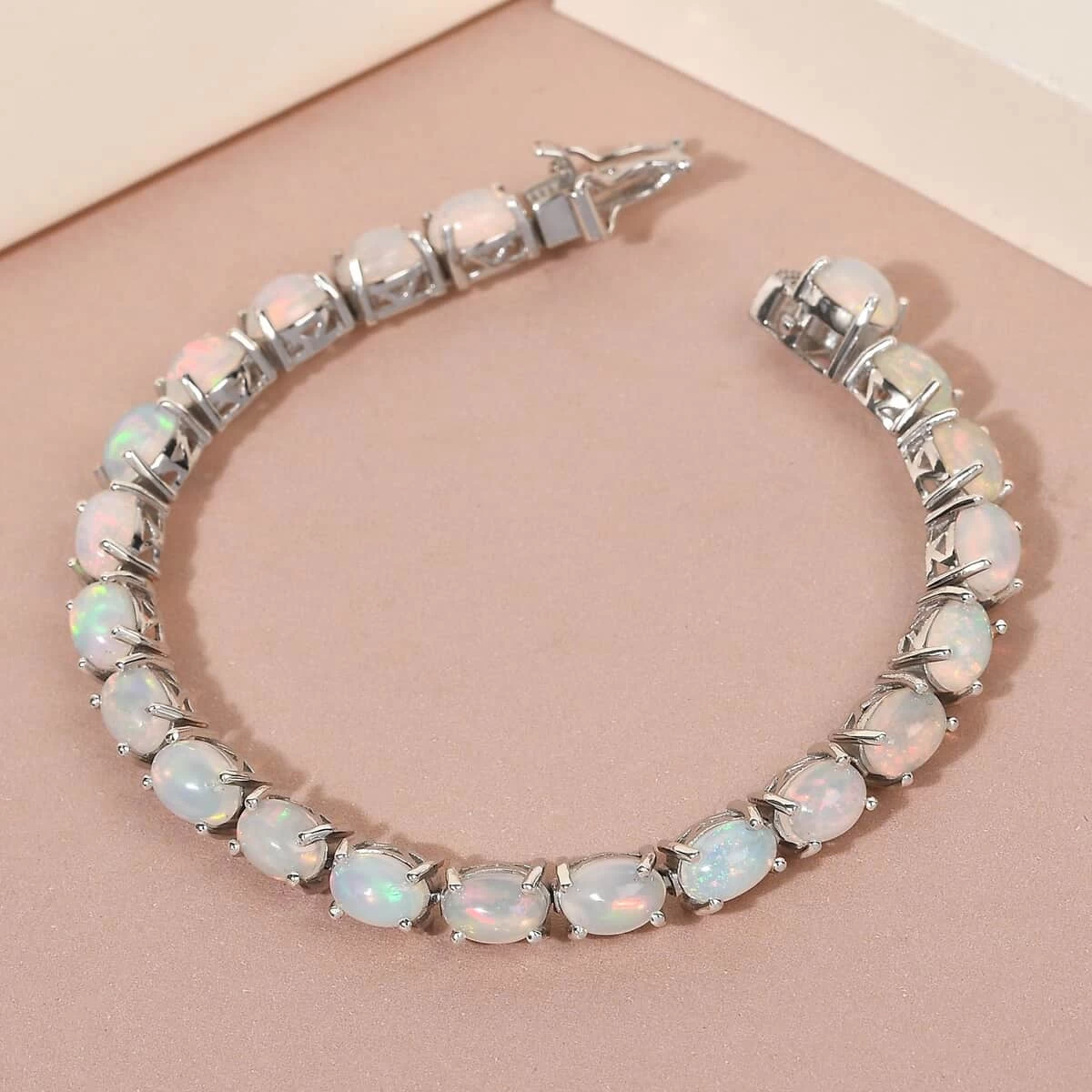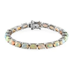 Inspired by the tennis style, this Ethiopian Welo opal bracelet has a subtle beauty to behold. The tennis style symbolizes continuity in the passage of life. The arrangement of oval-shaped gemstones in a series encircles your wrist, resulting in a comfortable closure. This tennis bracelet reminds you of the history it has been named after, with the rainbow luster of the gem adding a dazzling look to the bracelet. Ethiopian Welo opals are also known as hydrophane. They can absorb water and reflect more defined colors with an interplay of light. These incredibly rare opals will refresh your jewelry collection with a vibrant rainbow effect. Each gemstone is sorted and laid with precision; the jewelry is crafted of sterling silver metal plated with platinum. The metal frame is hypoallergenic and sturdy, making an ideal wear for all skin types.
