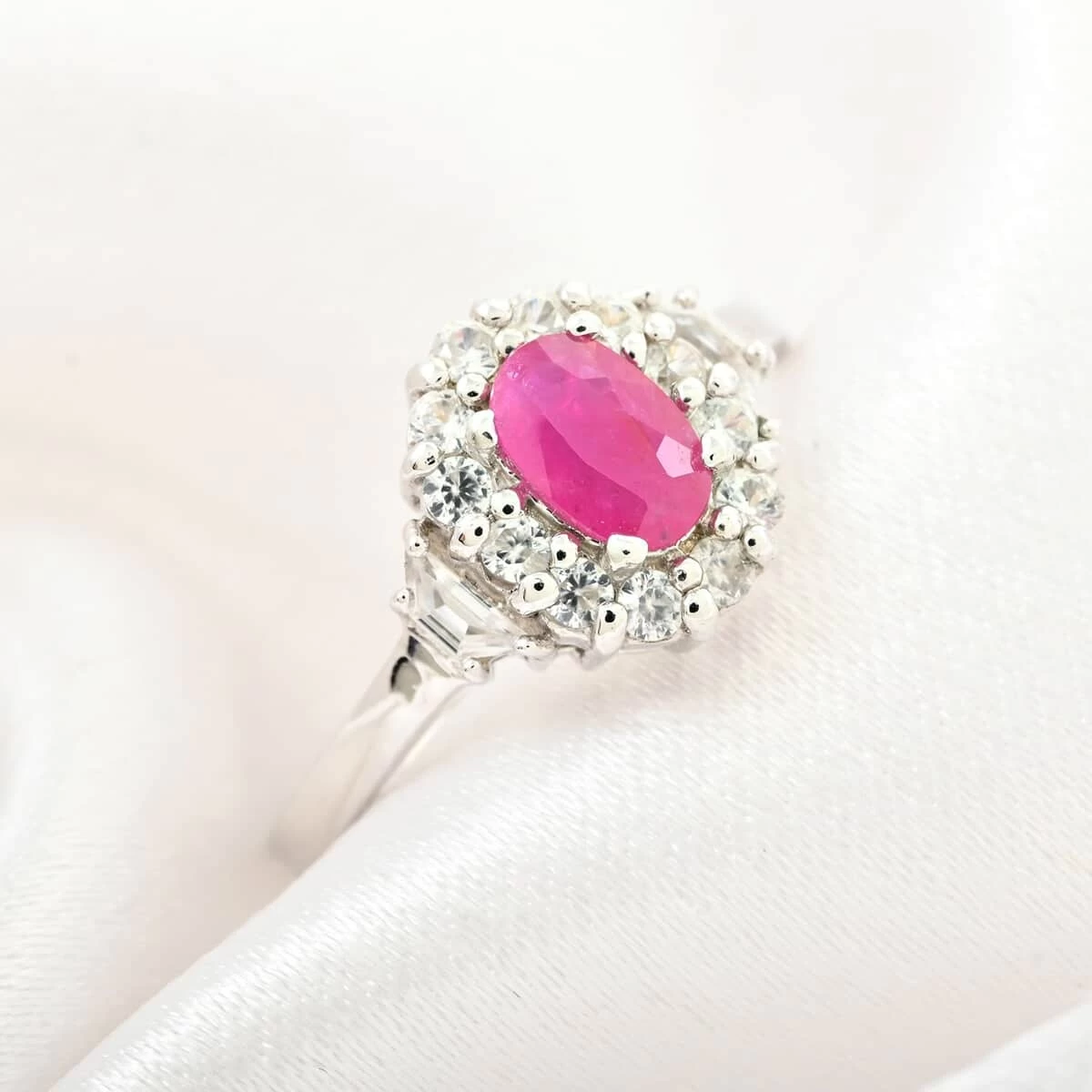 - HALO HISTORIQUE: The historical significance of the halo ring, once a mark of prestige, beautifully revived with modern artistry in this ruby silver ring