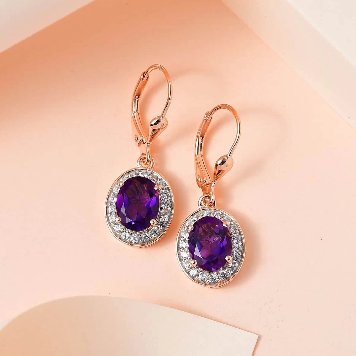 - ICY SPARKS: Framing the Moroccan amethysts are dazzling white zircons, whose icy sparkle perfectly complements the rich, royal hue of the central gem. Their scintillating light serves to amplify the depth and brilliance of the amethyst earrings