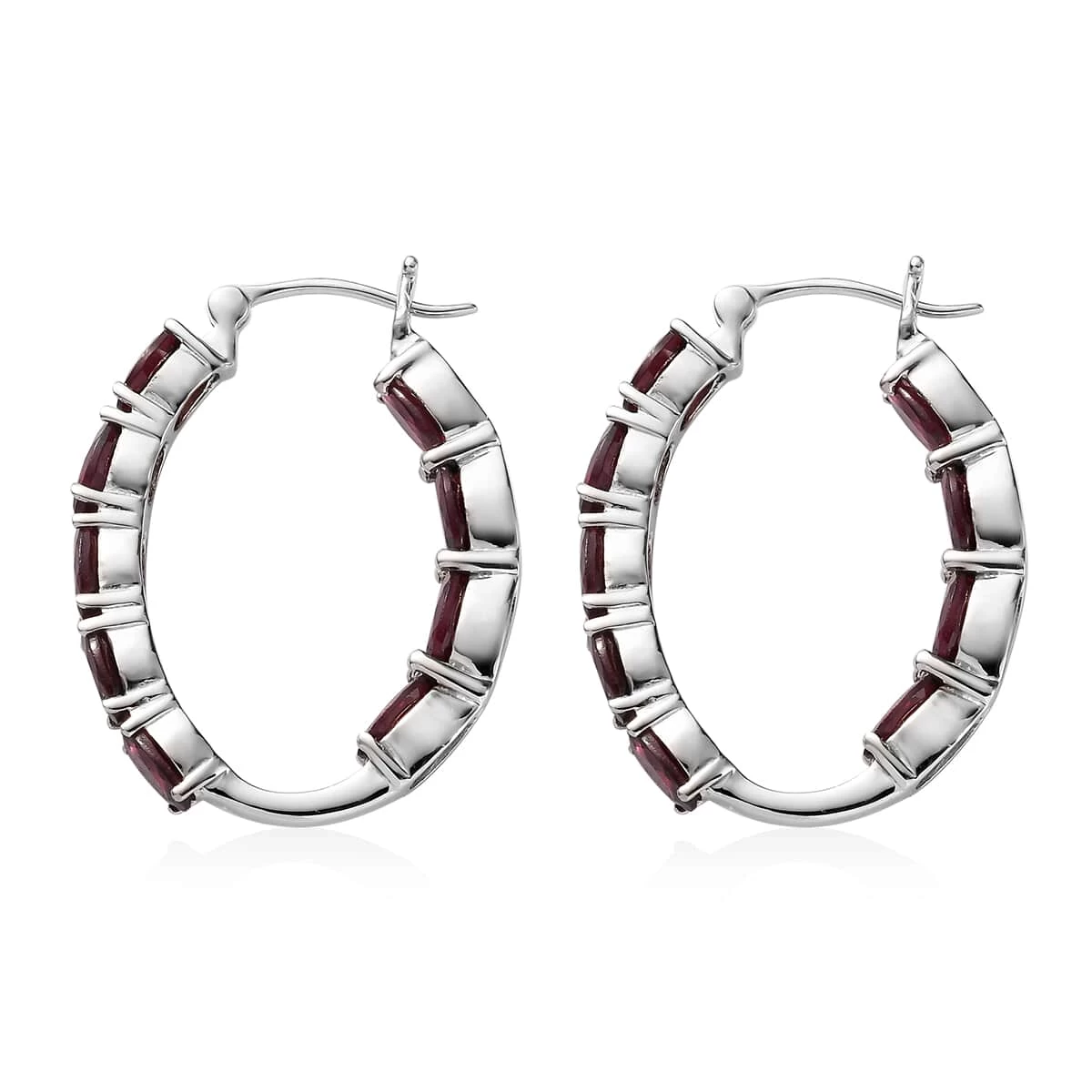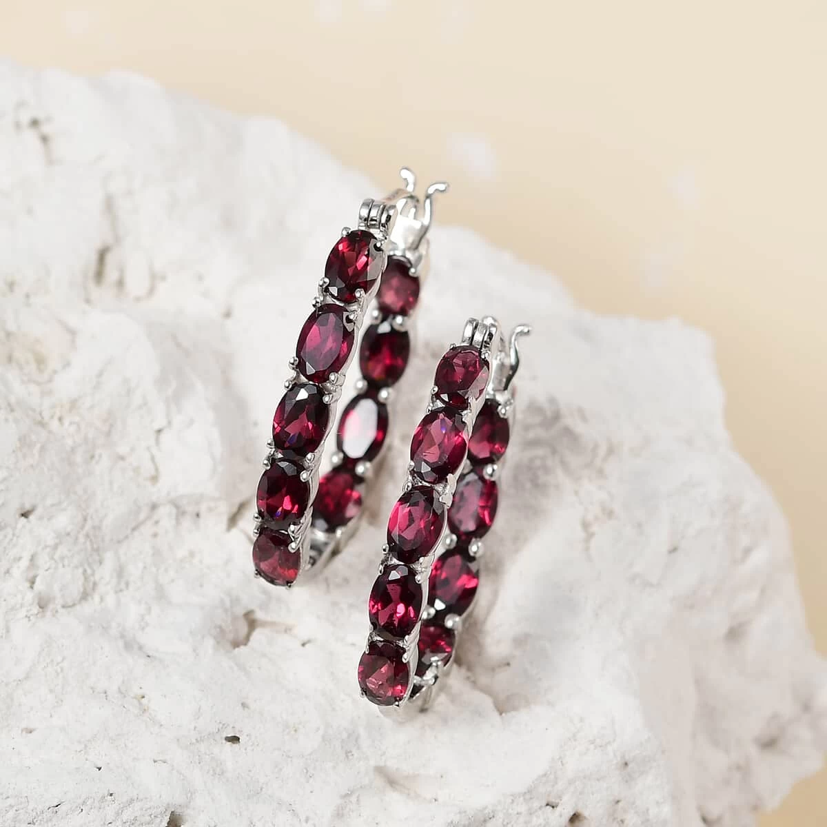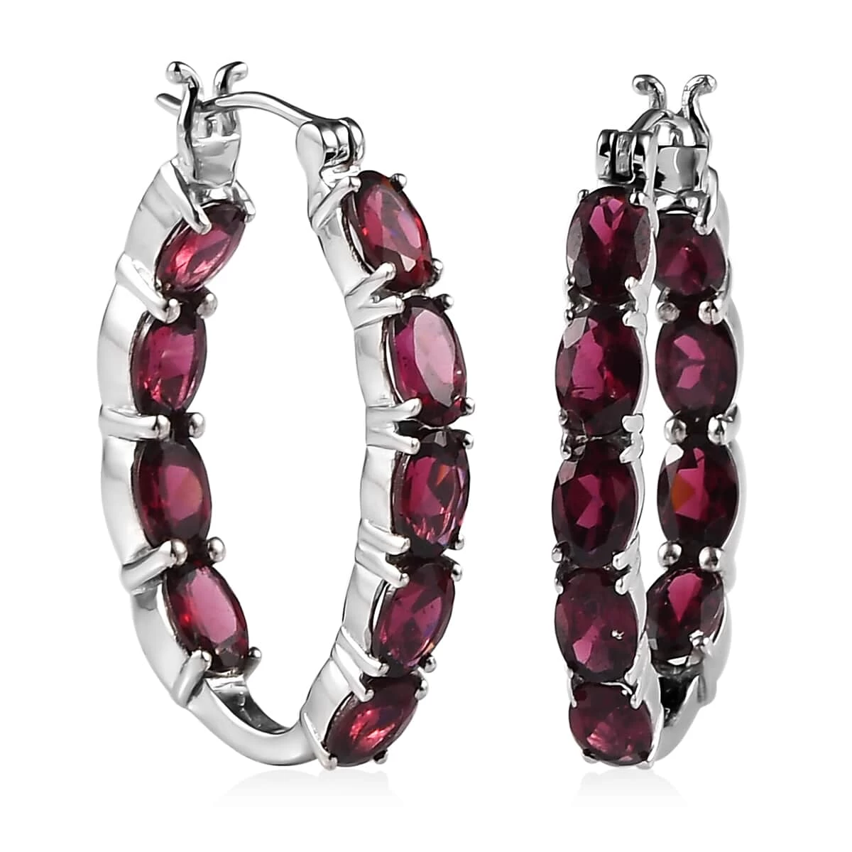 Symbolizing strength and resistance, these Orissa Rhodolite Garnet earrings have a subtle and beautiful appearance. These hoop earrings showcase oval-shaped gems arranged both inside and outside the hoops giving an adorable look. Each gem embraces the beauty of the metal pattern perfectly reflecting its own fire and brilliance. With a high refractive index, hardness, and amazing hue of the gem, these earrings are a perfect blend of minimalist and contemporary design giving a beautiful look. Hoop earrings are a perfect representation of boldness and confidence, and these earrings represent the same. The hinged hoop closure on ends allows the gripping of earrings to the earlobes.