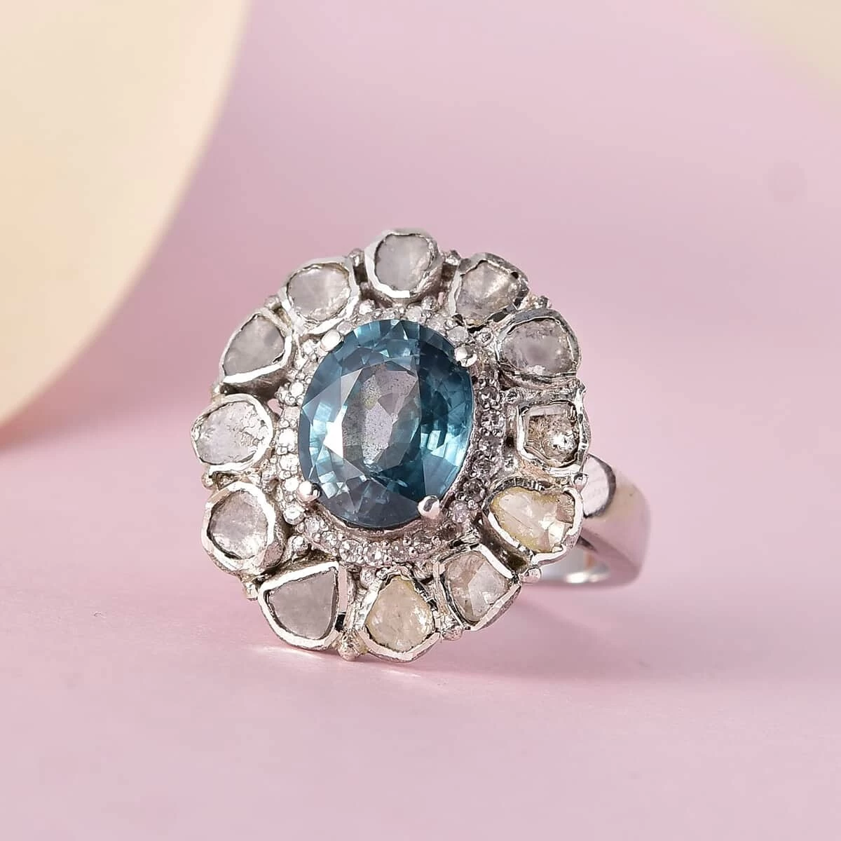 Indulge in the wonders of nature with this polki diamond ring. This stunning jewelry is crafted with meticulous attention to detail. Combining the lustrous gemstone and the sparkling polki diamonds creates a breathtakingly beautiful ring that exudes elegance and luxury.