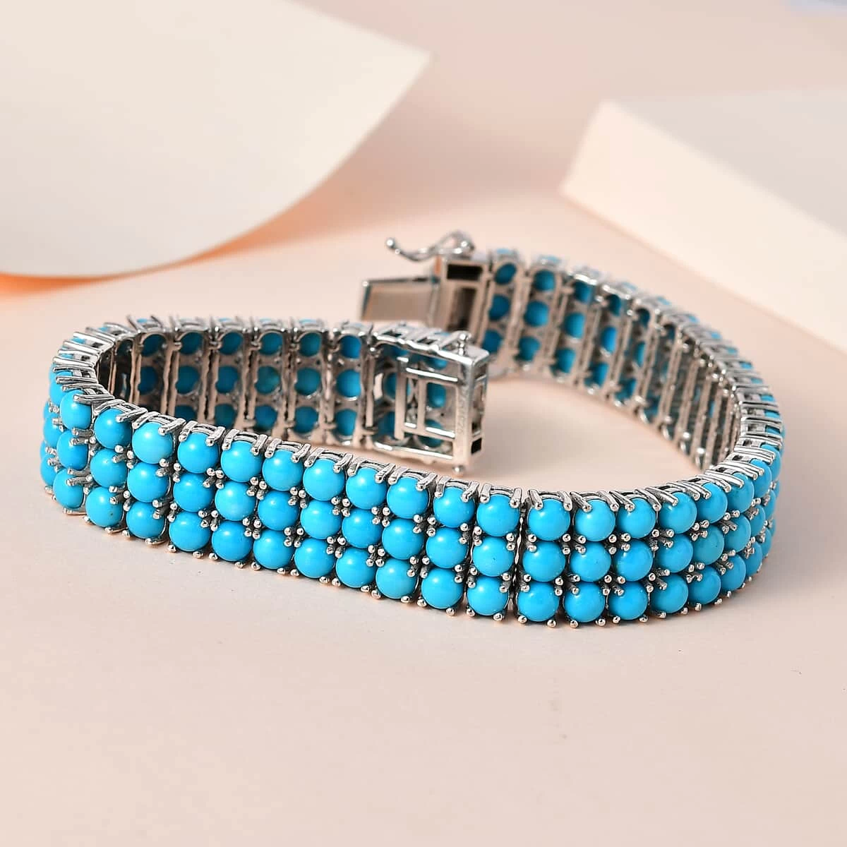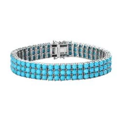 Step into a world of mystique and celestial charm with the sleeping beauty turquoise bracelet. Glistening with the serenity of azure skies, each turquoise stone is artfully set against a canvas of lustrous platinum over sterling silver. This bracelet is not just an accessory; it’s a poetic ode to nature’s wonders and artisanal excellence.