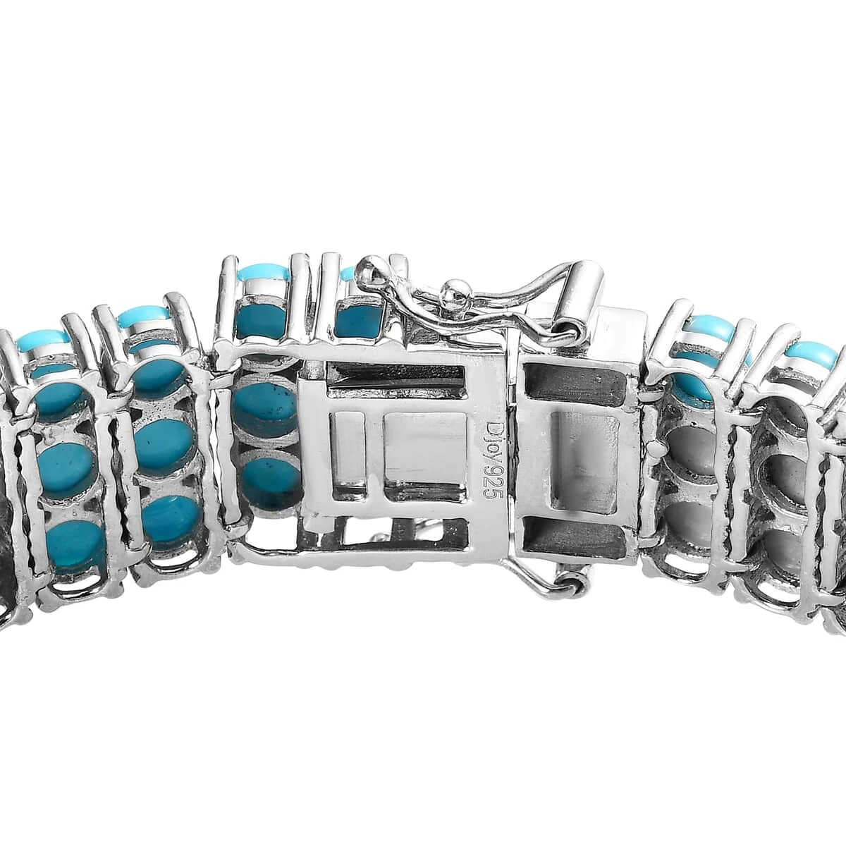 - PLATINUM POISE: The bracelet radiates with the luxury of platinum overlay, enveloping sterling silver’s strength. This union captures the luminance of morning’s first light, setting a gleaming stage for the turquoise to shine