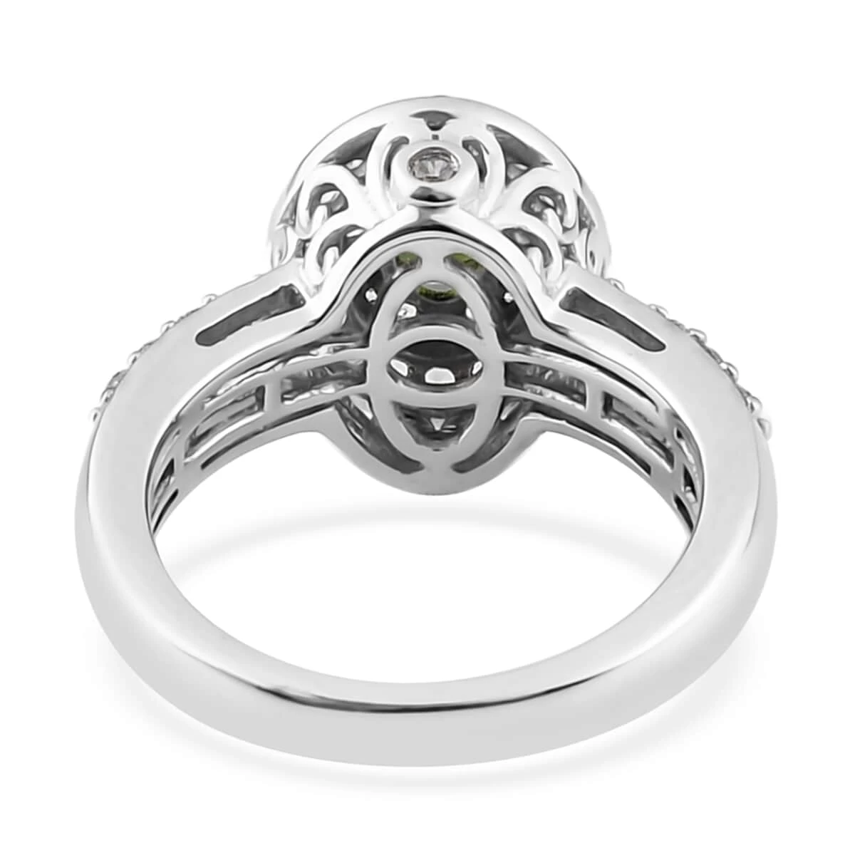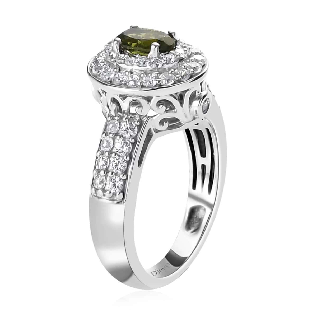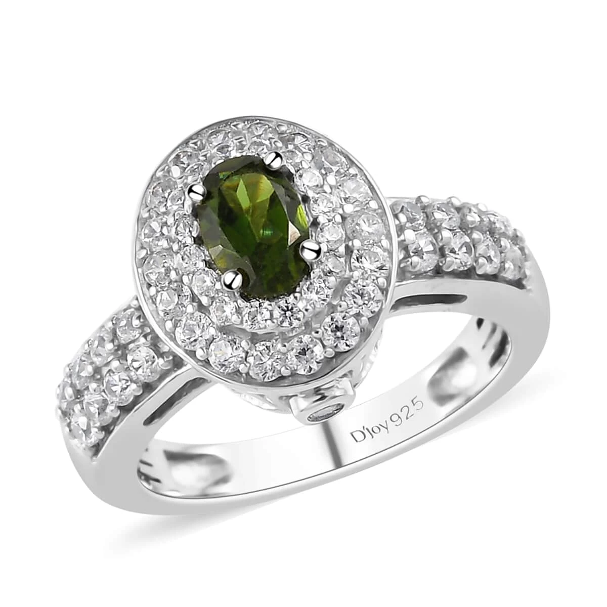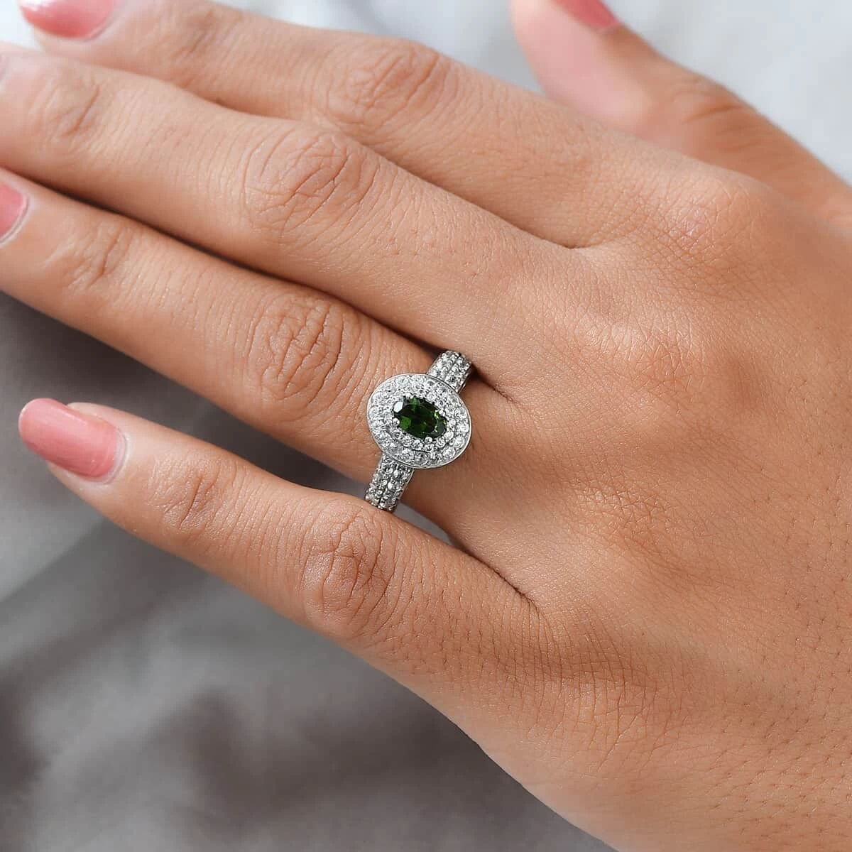 Inspired by a halo theme, this Tanzanian natural chrome tourmaline ring symbolizes divine glory. The oval-shaped premium gem in the center is highlighted by rows of natural white zircons giving a double halo look. Halo rings are traditional rings with their evidence in history and are perfect for engagements and anniversaries as they represent eternal love. This double halo ring gives a modern touch to the halo rings bringing in the style and elegance of contemporary fashion. The rows of zircons on the shank give a scintillating look to the piece. The swirl design on the basket area with round zircon in the center enhances the beauty. Tourmalines are the trendiest and most diverse gems in jewelry. Natural chrome tourmaline is a unique addition to the list of tourmalines. Traces of chromium and vanadium found in chrome tourmaline give it an emerald-like color, making it different from other varieties of tourmaline.