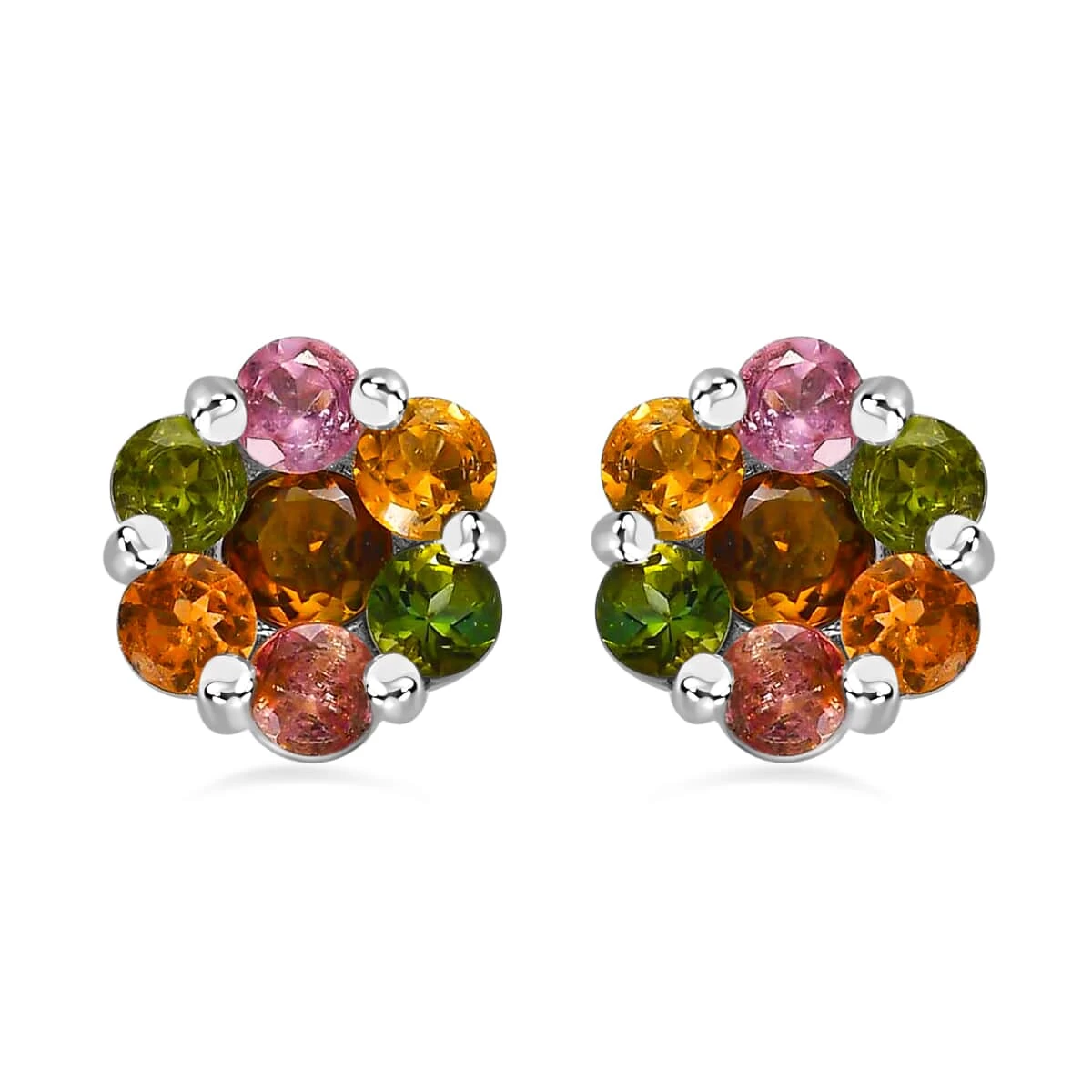 Dipped in a palette of colors, these stud earrings are designed in a flower shape. The multi-colored tourmaline gemstones are arranged beautifully, reflecting happy moments of your life. These colorful tourmaline earrings are a great piece of floral jewelry, where the appearance and look say it all.