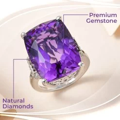 Amethyst, Natural Champagne And White Diamond Ring In Platinum Over Sterling Silver 21.90 Ctw