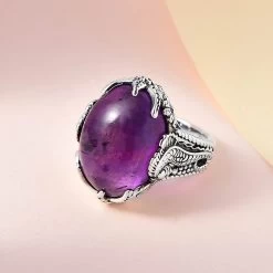 Artisan Crafted African Lilac Quartz (Triplet) Solitaire Dragon Ring In Sterling Silver 14.25 Ctw