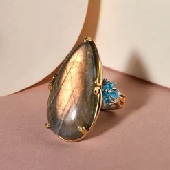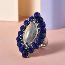 Larimar Floral Ring, Multi Gemstone Cocktail Ring, Sterling Silver Ring, Larimar Cluster Ring